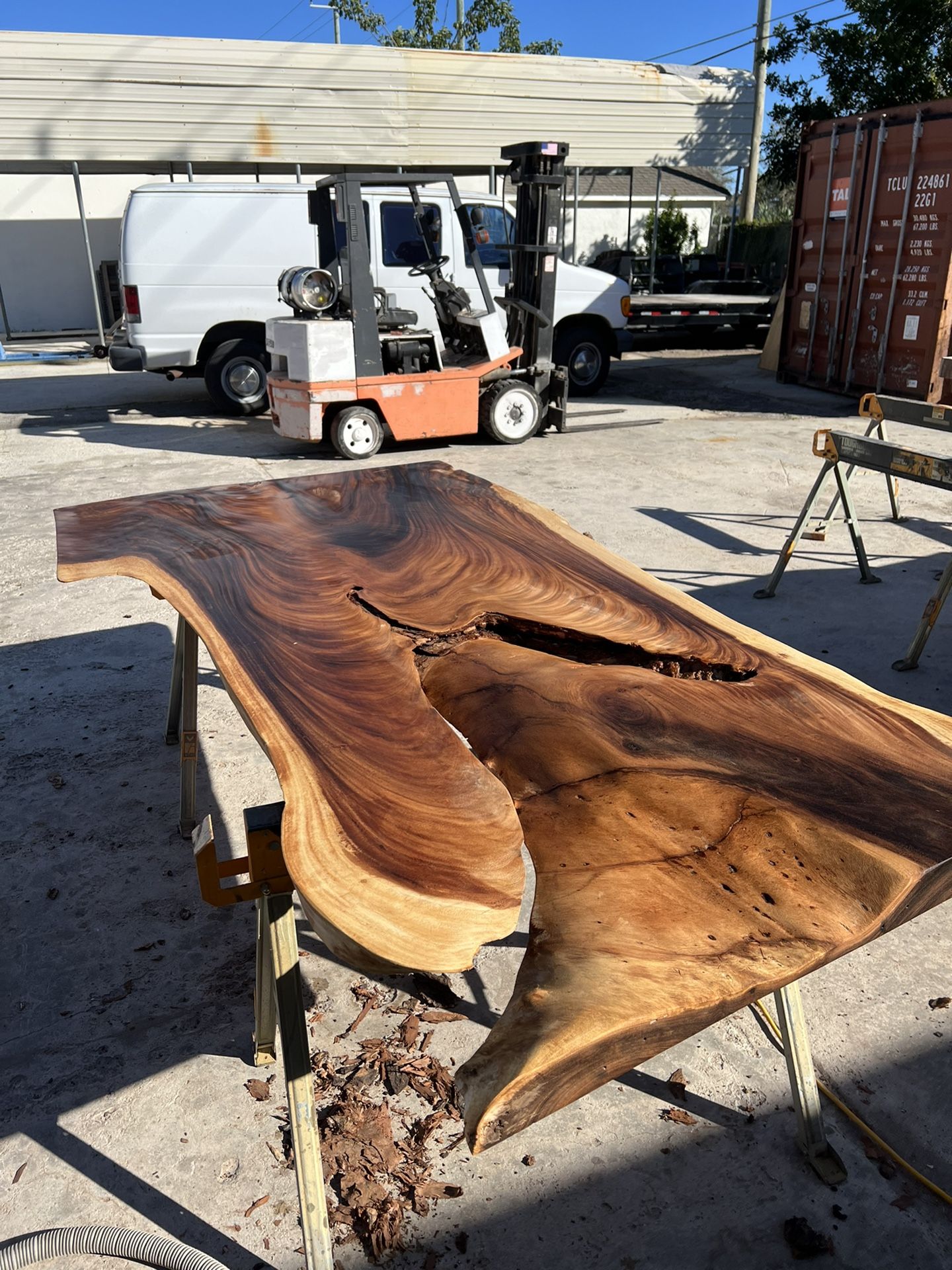 Wholesale Live Edge Slabs!! 💥 Kiln Dried Hello, We are a family company in Broward county. We have a large selection of exotic hardwoods in stock. We source our lumber from the Pacific, including Hawaii, Fiji and Costa Rica . We go after high figured pieces with amazing grain action and color. Our slabs are kiln dried, fed through a wide belt sander at 100 grit , leveled and ready for pick up, delivery or shipping. Slabs range between $15-$20 per Board Foot raw for bulk purchases. We offer individual slabs as well. We sell raw slabs and custom build live edge furniture. Ask about our finishing prices! We have the best products in town for a great price. Message for more details or to set an appointment to come to our showroom. We would love to show you around and what we do. I know you will love what you see!!! If you can not make it to our shop we offer virtual appointments! Thank you , Veteran Owned and Family Operated! We are located at 700 NE 42nd St Deerfield Beach, FL 33064 Mon-Sat 8am-3pm 954*..851*..4988
