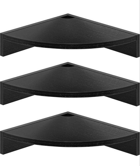 Corner Shelf Wall Mount, Black Wood Floating Corner Shelves, 3pk