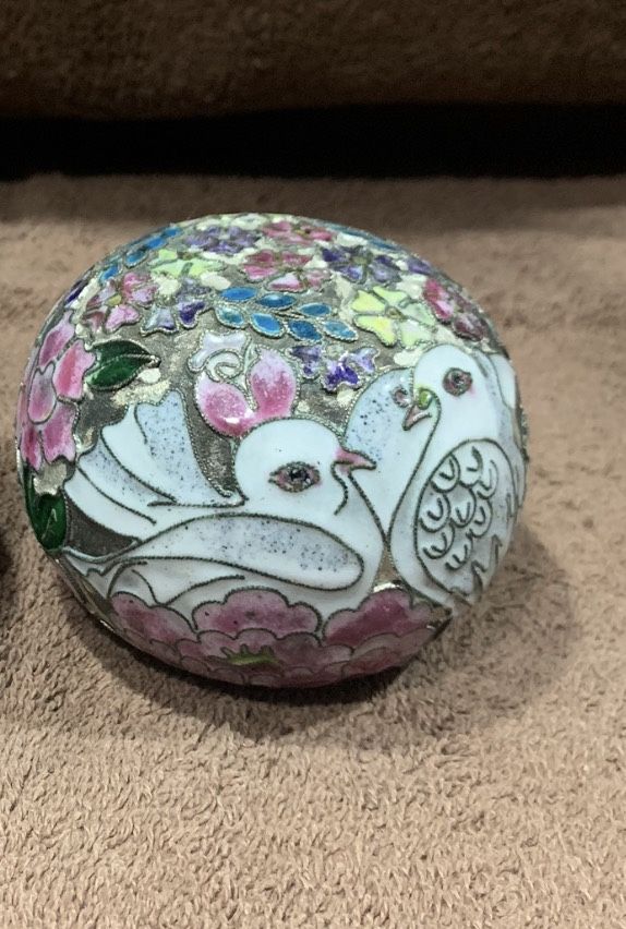 VTG Cloisonne Paper weight enameled, floral, Gold, Purple, , pink, green Round