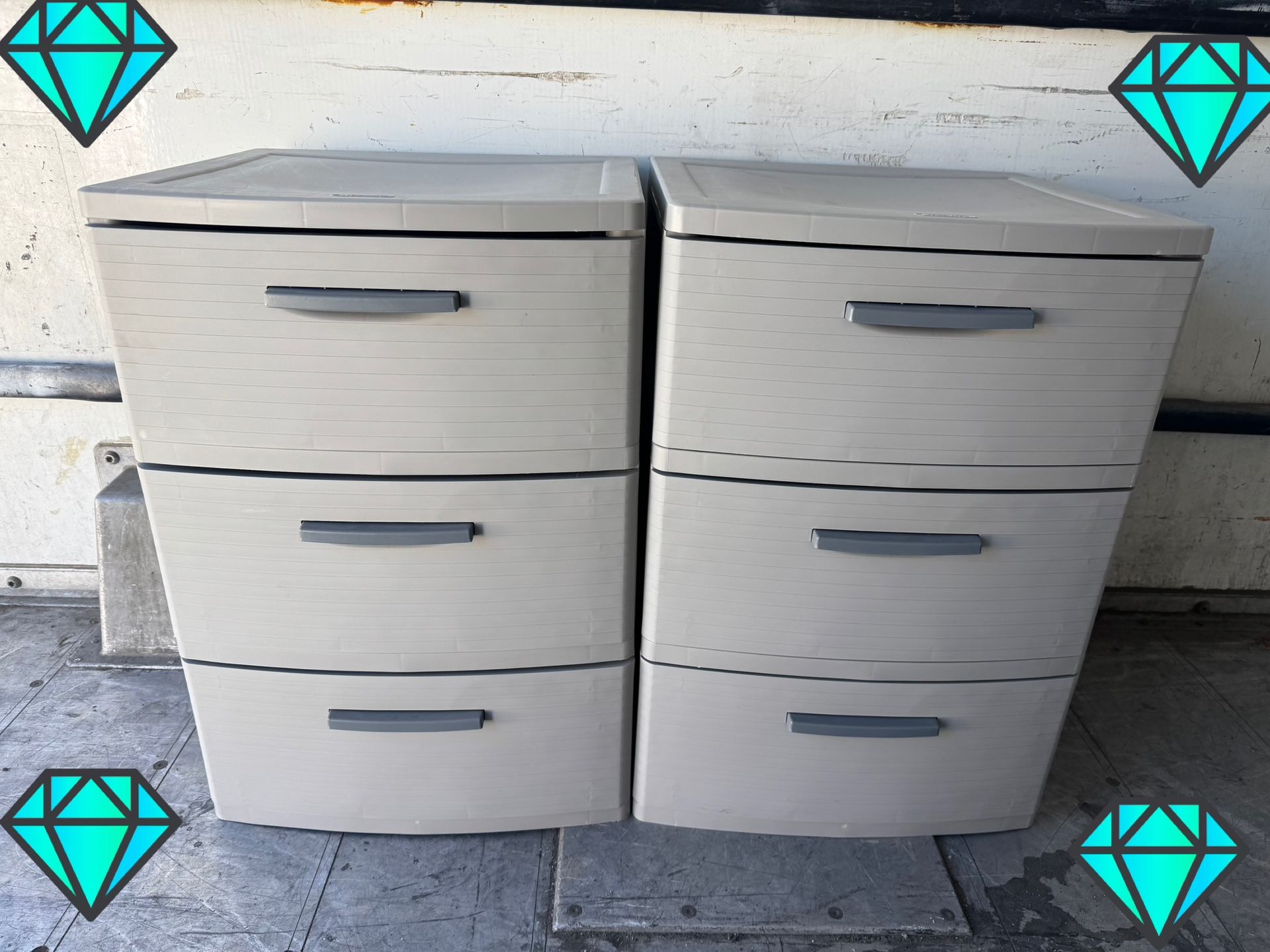 Durable plastic storage drawers, perfect for outdoor use. in good condition asking $80 for both or can sell them individually for 40 apiece Overall good shape can deliver for additional fee si Habla Español.