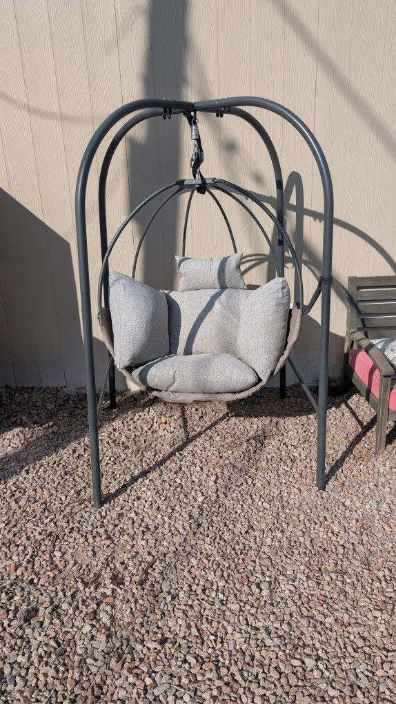 Round swing chair with metal frame. Can hold 400lbs. Make me an offer.