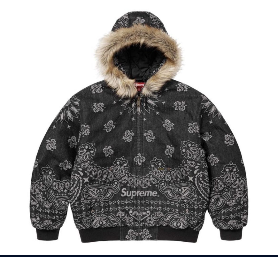 Brand new Supreme Bandana Jacquard Denim Hooded Work Jacket Black Medium Pickup only