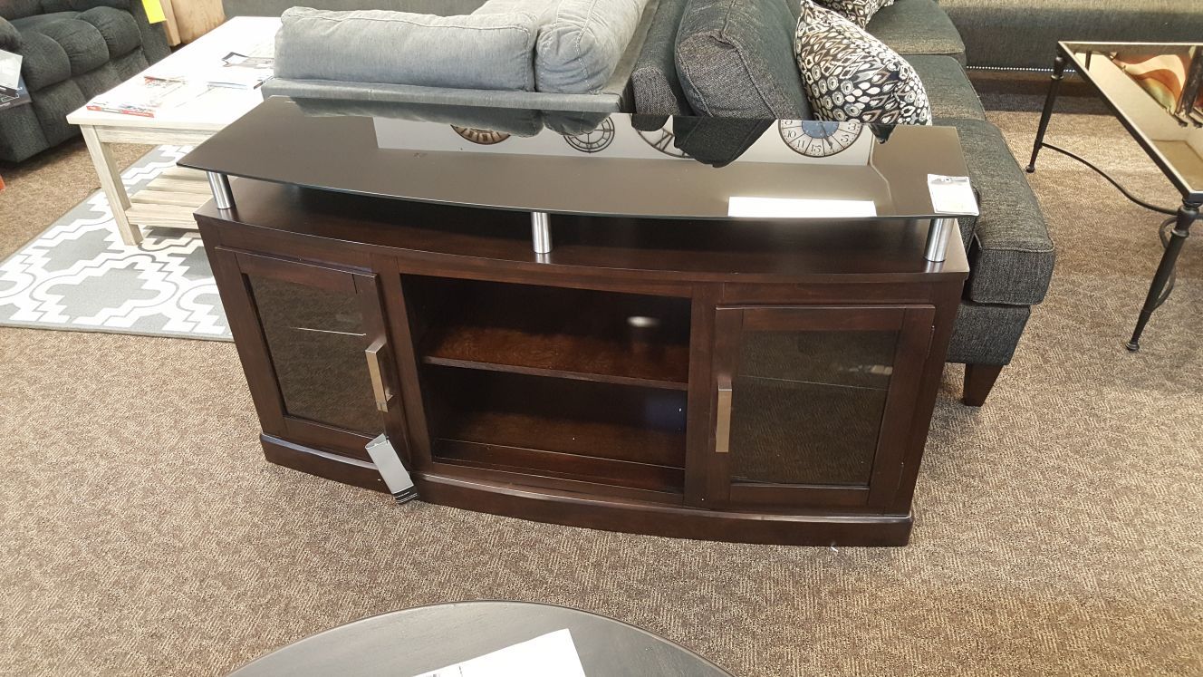 Glass top espresso finish tv stand. 60 inch wide