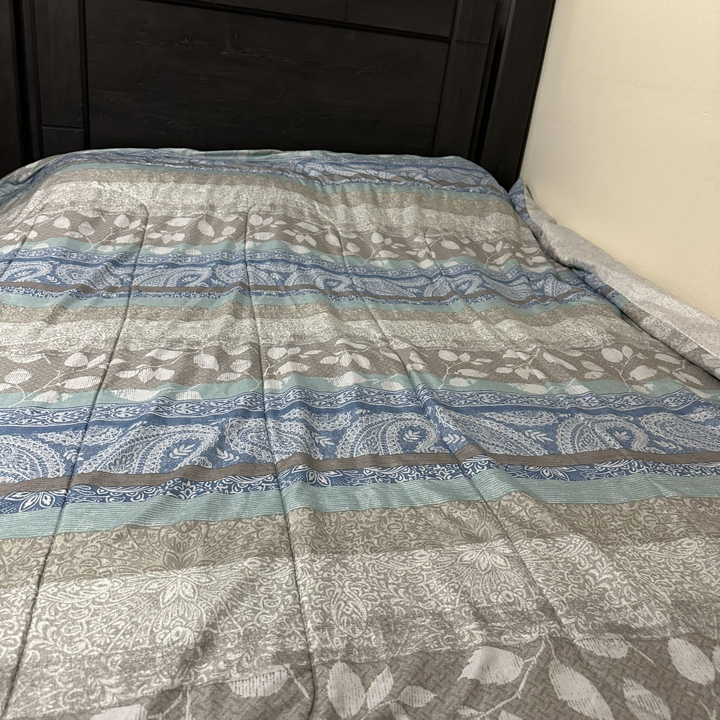 Queen size bed with mattress and box spring. Bed is in really good condition as it was only used for a guest bed. Office desk by Ikea and small drawer next to desk. Great for work from home space.