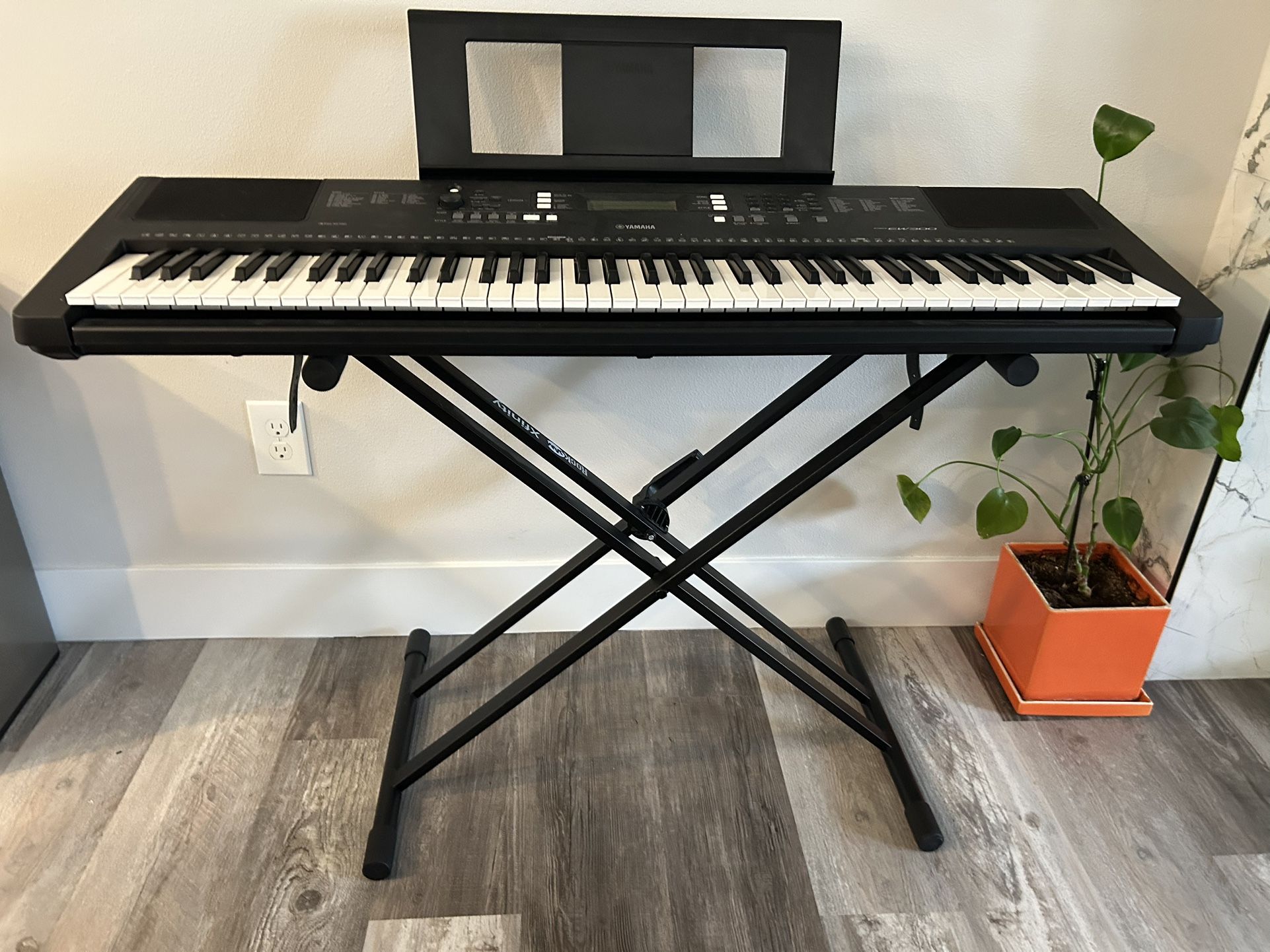 Yamaha PSR EW 300. Measures 45x15x5. So many bells and whistles on this. Great sound with the dual speakers. Can connect your devices as well to access even more options. Portable. In great shape as the only time we ever moved it is when we moved to our new house-we just don’t have room for it anymore so we have to say goodbye. This sells for $300 on Amazon now and that doesn’t even include the power cord. Comes with power cord and we will throw in the adjustable stand for free. In great condition. All the keys are fully functional. If this is still listed then it is still available. Price is firm. Cash or Venmo only. You must pick up.