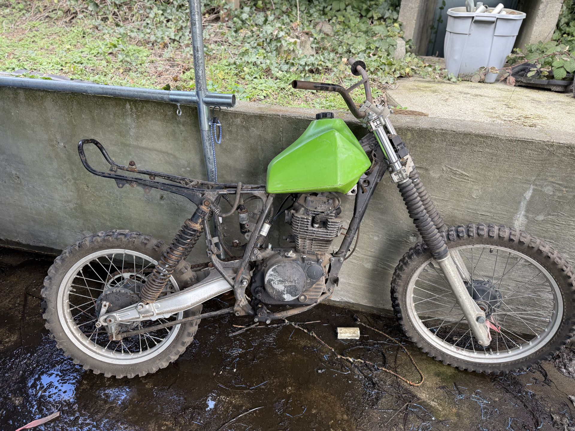 1979 Kawasaki KLX250 titled dual sport parts bike. Engine turns freely. Does not run. Missing: carb, exhaust, seat and more. Selling for friend, so I do not know the history. Cash only. Has title.