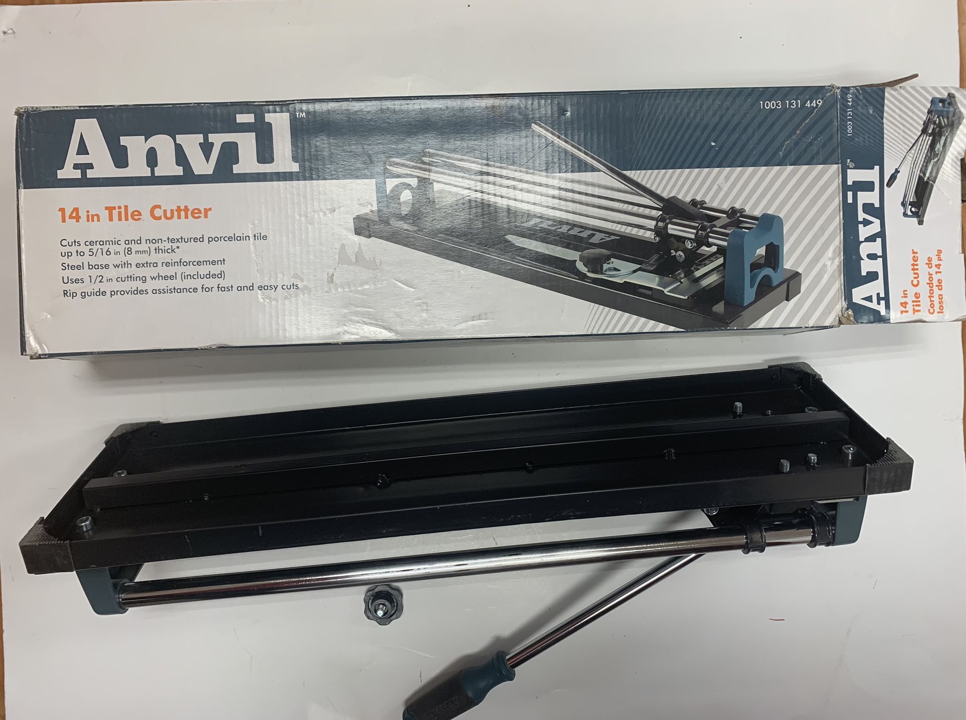 14 in Ceramic and Porcelain Tile Cutter with 1/2 in Cutting Wheel Tile cutter with chrome plated steel rails for smooth scoring Cuts tile 1/4 - 3/8 in thick, great for DIY tile installation