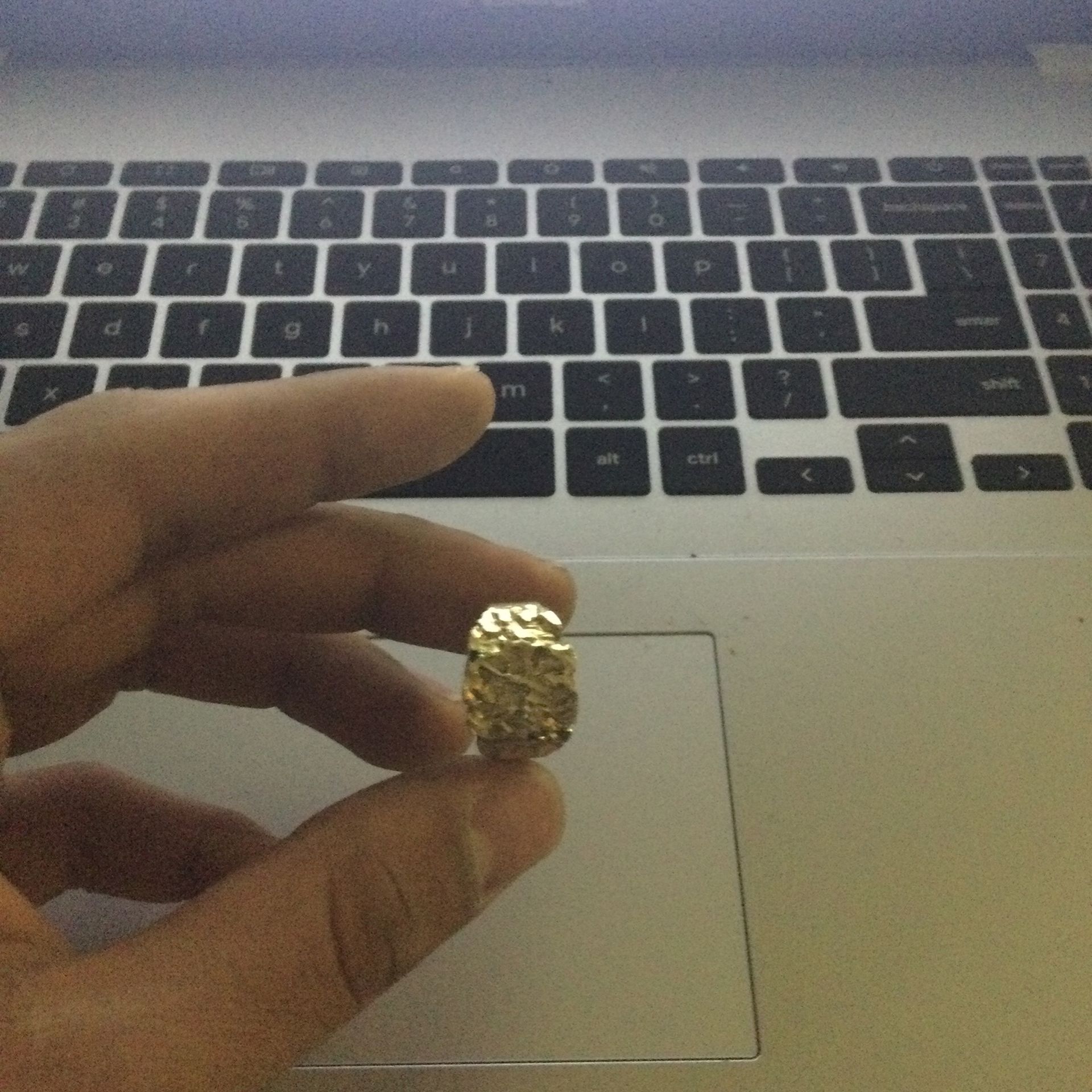 I buy a lot of things on impulse you can say and this is no exception. I’ve had it for about a year and a half it’s a big nugget ring most likely to fit your bigger fingers I have fat hands so it only fits on my pinky . It weighs 5 grams bought it for 350$ but will let go for 130$ can’t find that in the store for a fact . If your interested message me . Please dont waist mine and your time , we only have a certain amount.