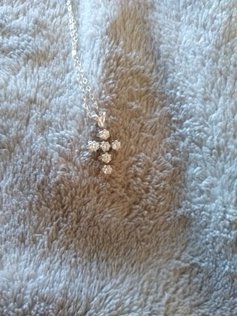 Little cross with diamonds accents silver chain also