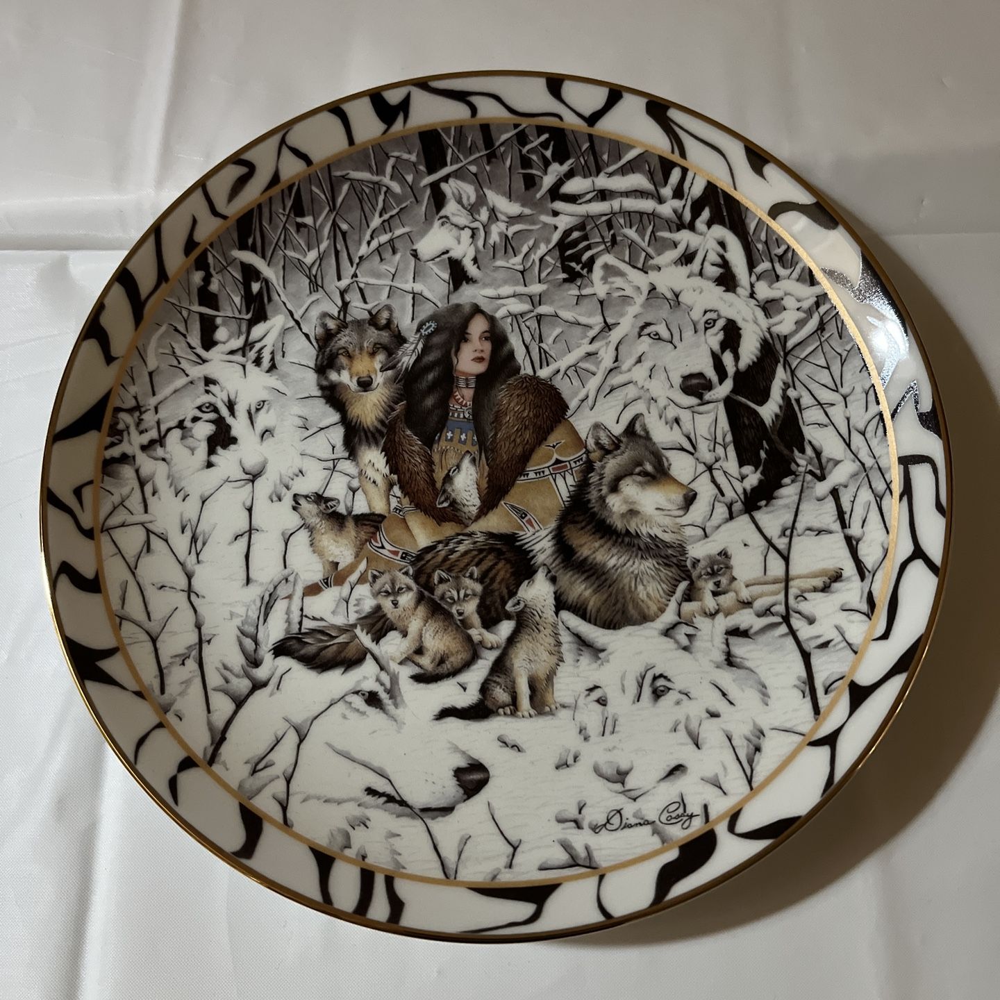Bradford Exchange Native Harmony Diana Casey Where Paths Meet Wolf Art Plate 1996
