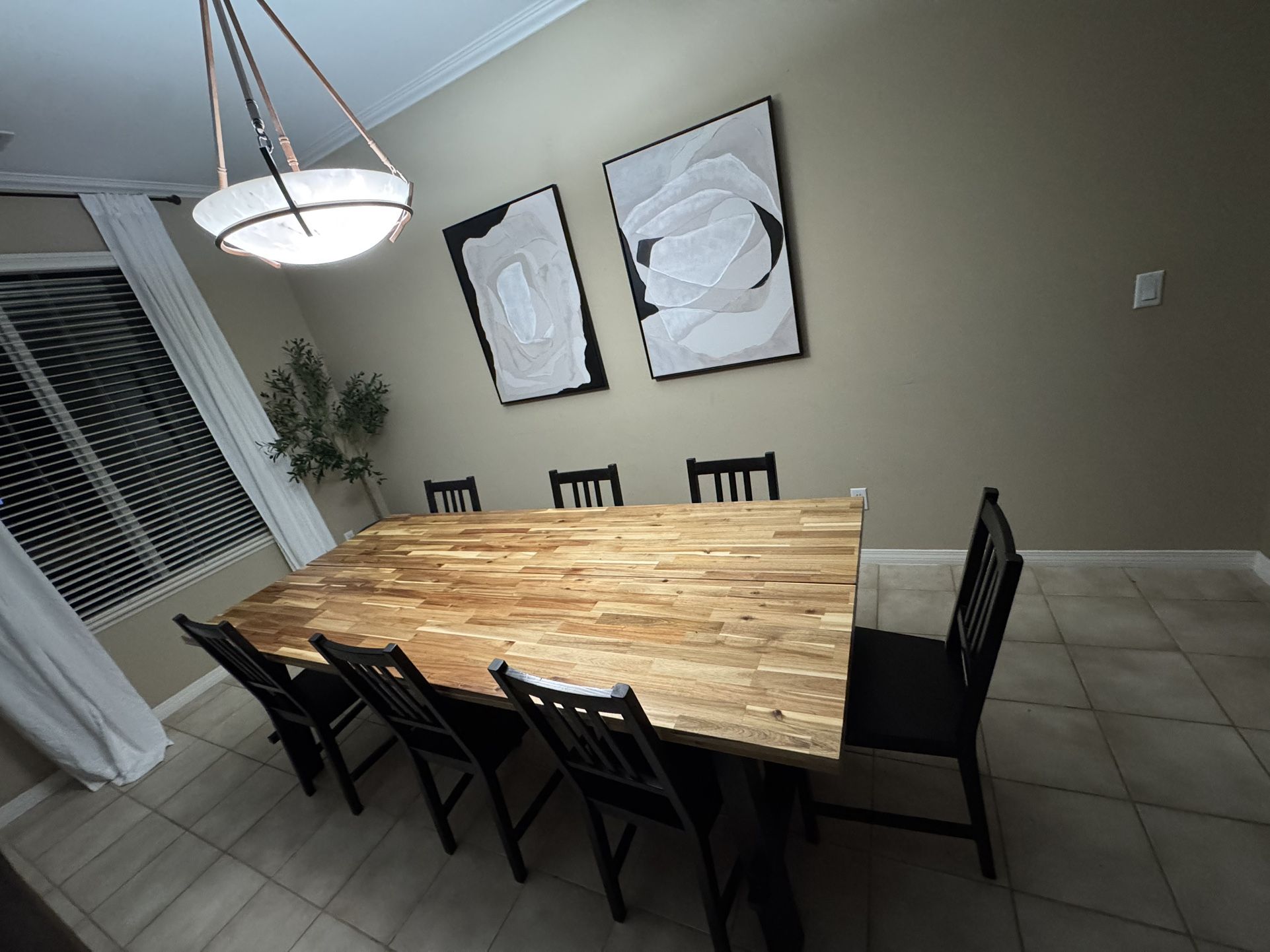 Comes with 7 chairs & table Must pick up yourself bring help and a truck can come apart with basic tools for an easier move Length: 92 1/2 " Width: 39 3/8 " Height: 29 1/8 "