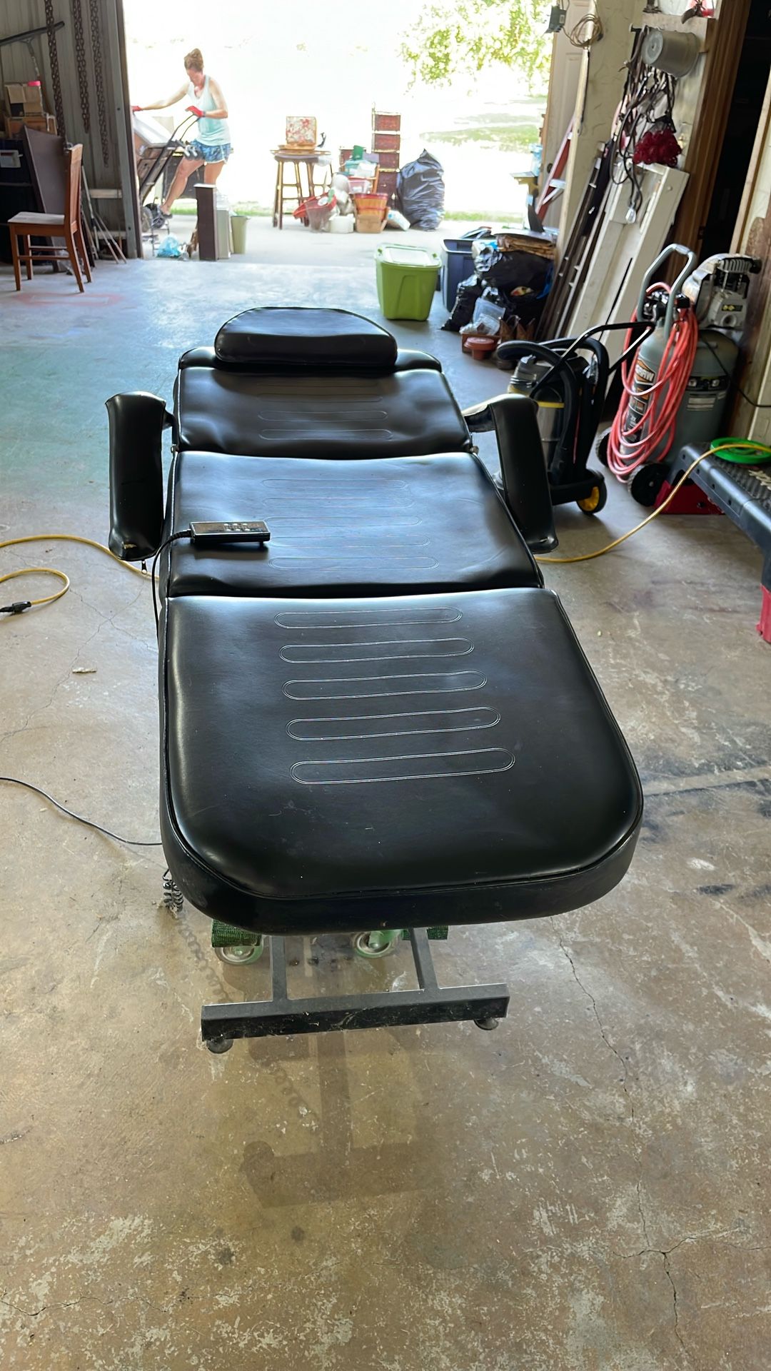 Electric adjustable chair. Bought for daughter to do eyelashes and it never left the shop. Taking up space and want gone. Not sure of brand. Functions as it should.