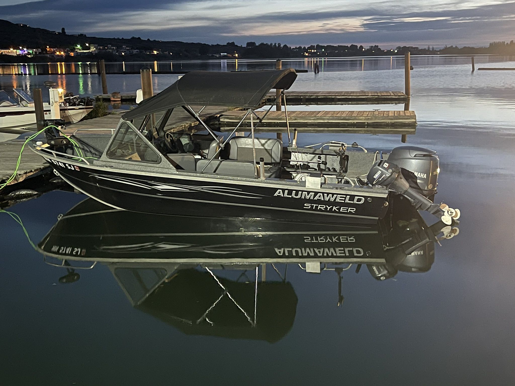 Standard Stryker Sport 2-9” humminbird Helix, 2024 1-7” Helix, older 2 scotty downriggers NMEA network that connects to main engine for engine info 5 port Humminbird Ethernet Original enclosure to keep you out of the rain. Terrorva electric trolling motor, 36v 112lb thrust. Awesome. Networked and remote. 3 lifep04 bluetooth batteries and charger. Boat has Acr for starting and house battery along with a charger for them. Red or white lights illuminate the interior of the boat. 90hp Yamaha has around 370 hours, we can see it on the Helix. 8hp Yamaha kicker has troll master with a tie bar to the main for trolling. Both serviced in the last year or so. Rogue folding tongue trailer We have grown and that is why we are selling Happy to meet at Lake Washington or Lake sammamish for a serious buyer test ride