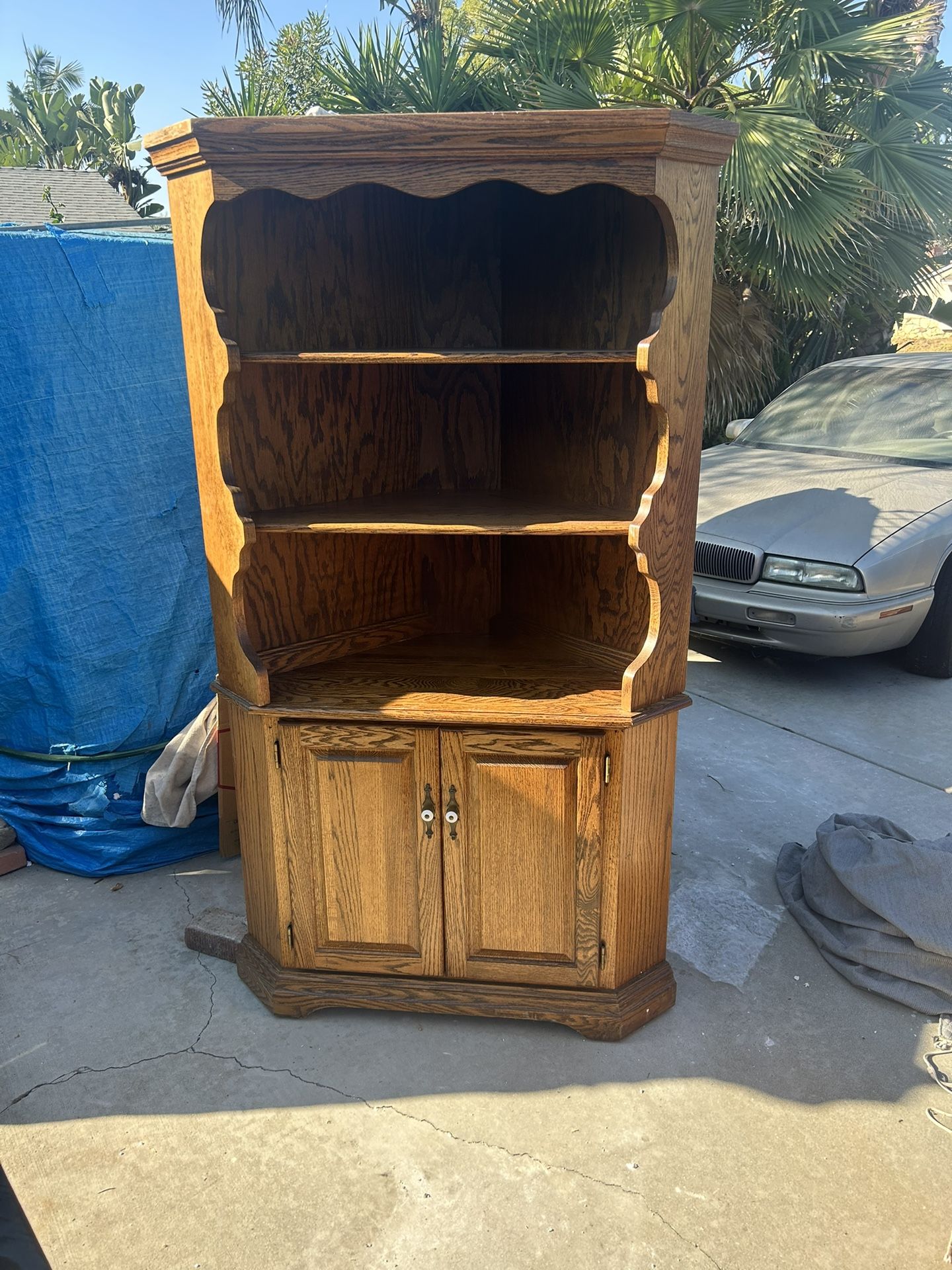 Excellent condition 2 sections of storage. Top part has 2 glass shelves. Bottom part 1 shelf