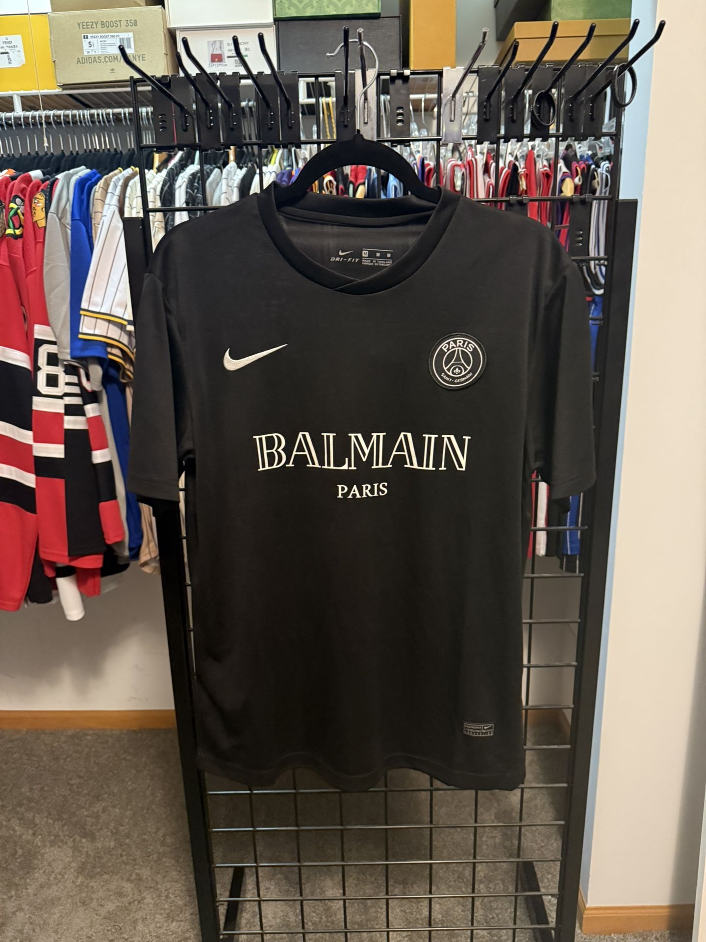 Brand new and never worn Paris Saint Germain Balmain soccer jersey! Buy today ships to you tomorrow guaranteed! Extremely fast shipping!