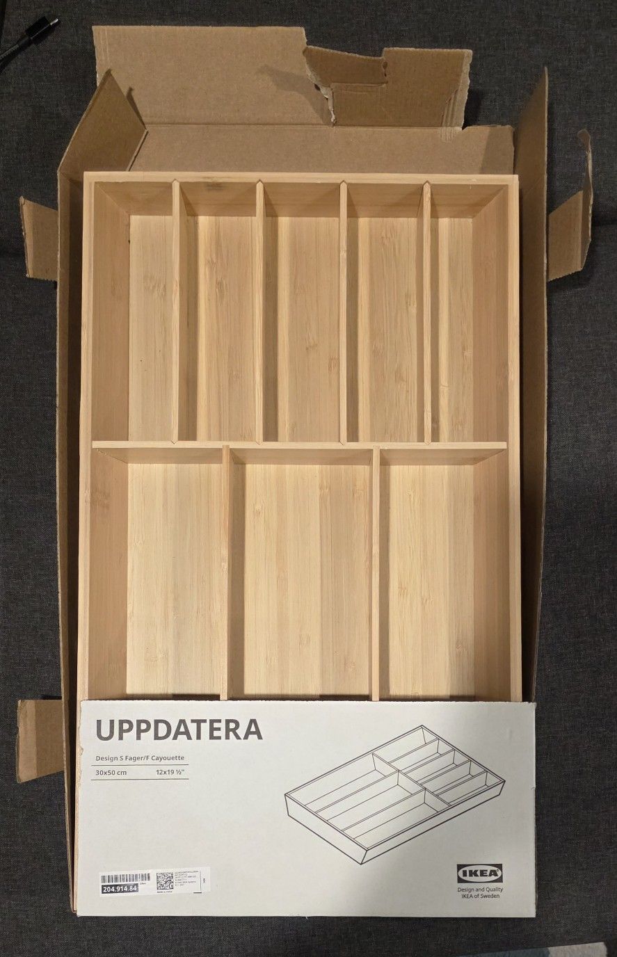Ikea Flatware Tray. I opened the packaging and realized later that it does not fit my drawer. It is not used. Originally bought from Ikea for $20