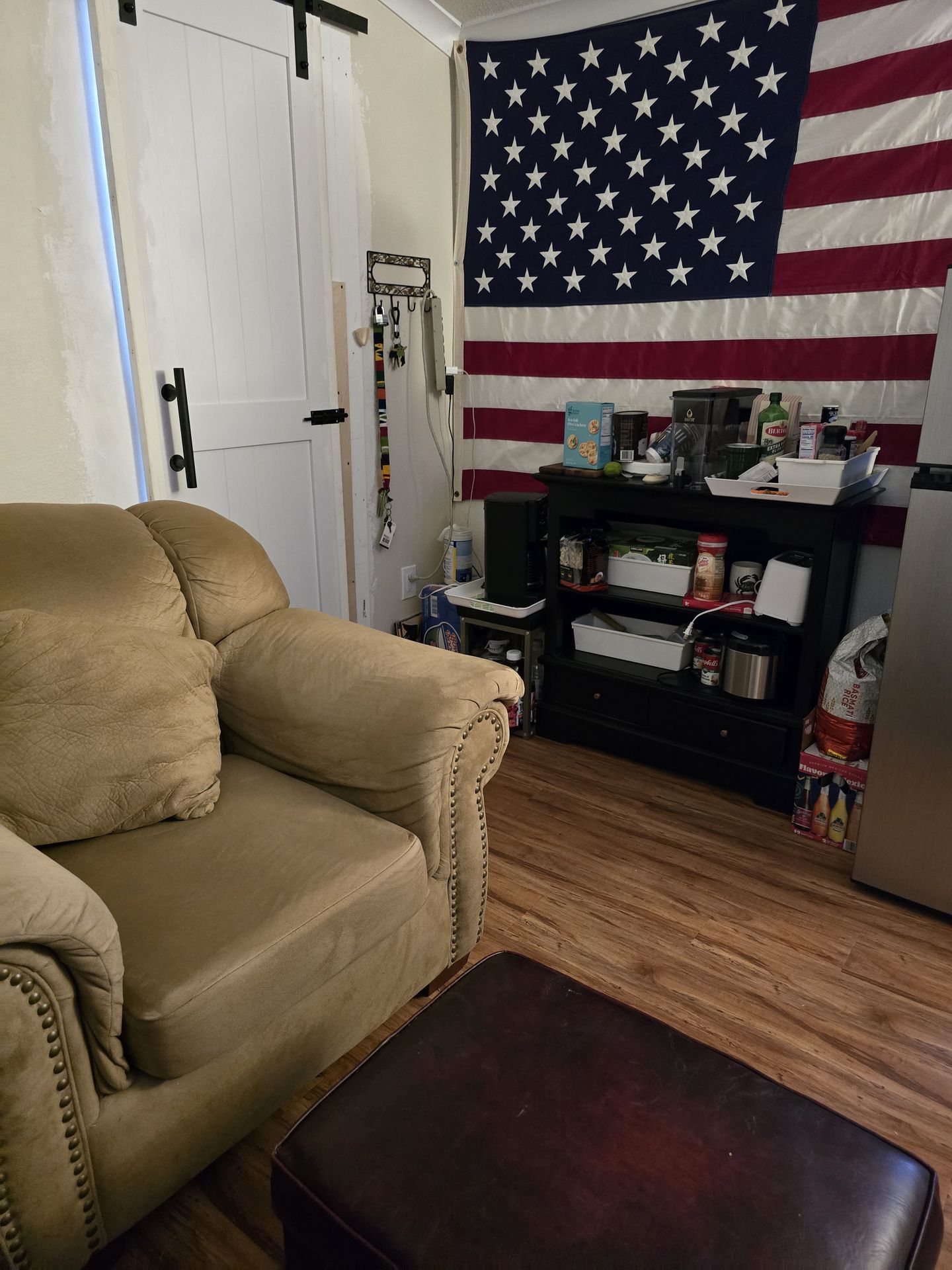 Bedroom and sofas available April 1 2026, bathroom,una persona