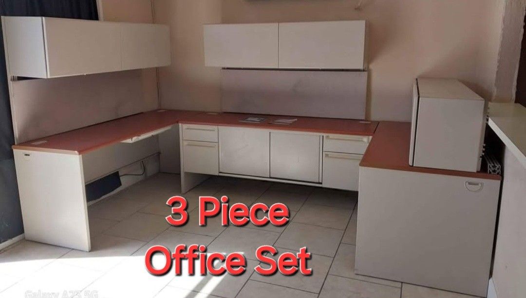Matching 3 Piece Set Executive Ofiice Desks And Storage / Filing Cabinet