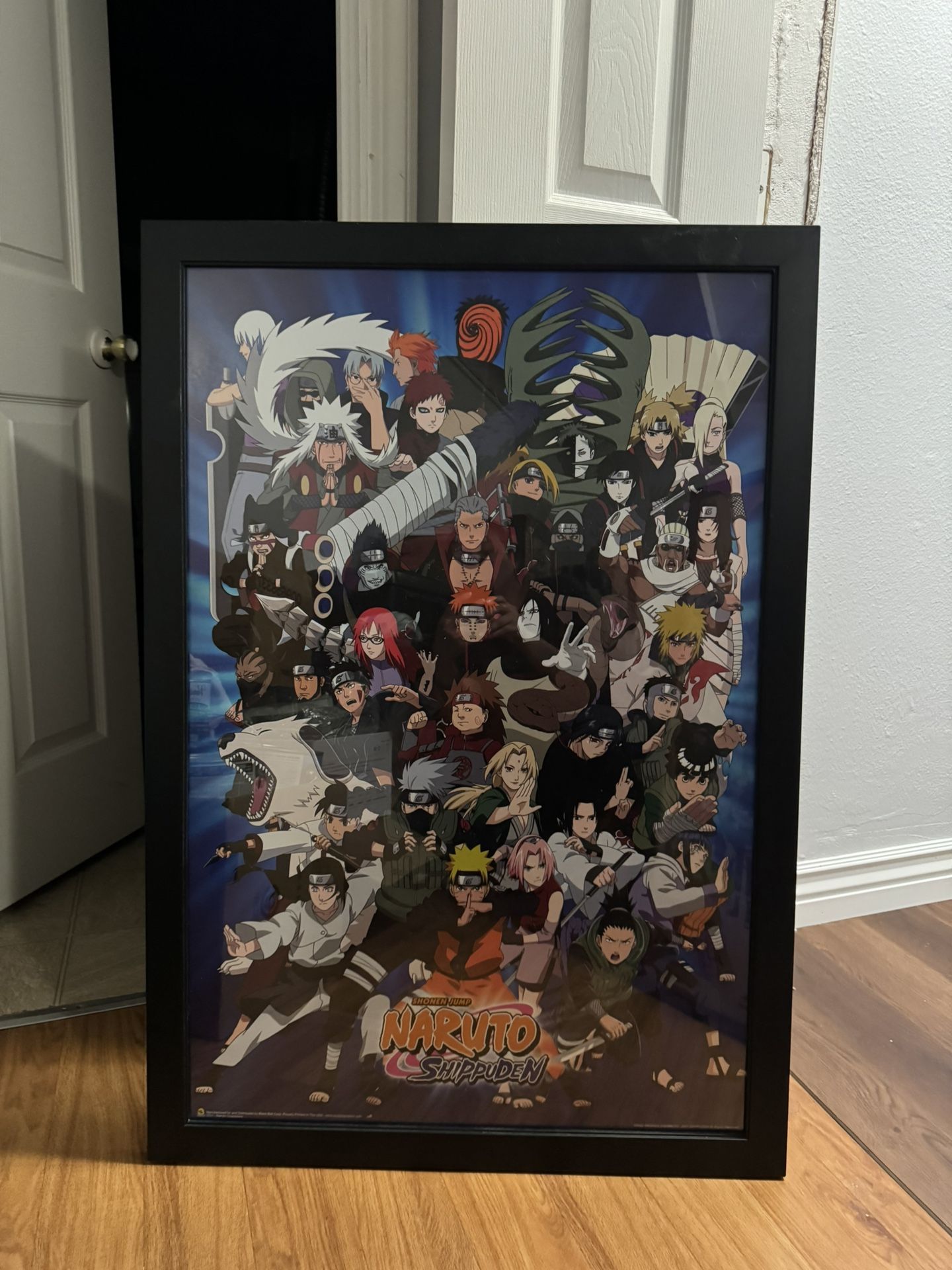 Diff size frames 17” by 11 $15 each 35” by 33” Naruto frame $25 only one Poster size 39 x 27” Naruto frame $35 only one