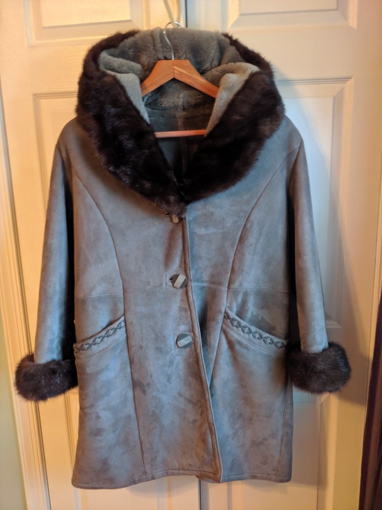 Lamb Shearling with Mink Collar The coat is a size 44, about 15 years old and is in like new condition. Also available is a 24" fox shawl. $200 OBO