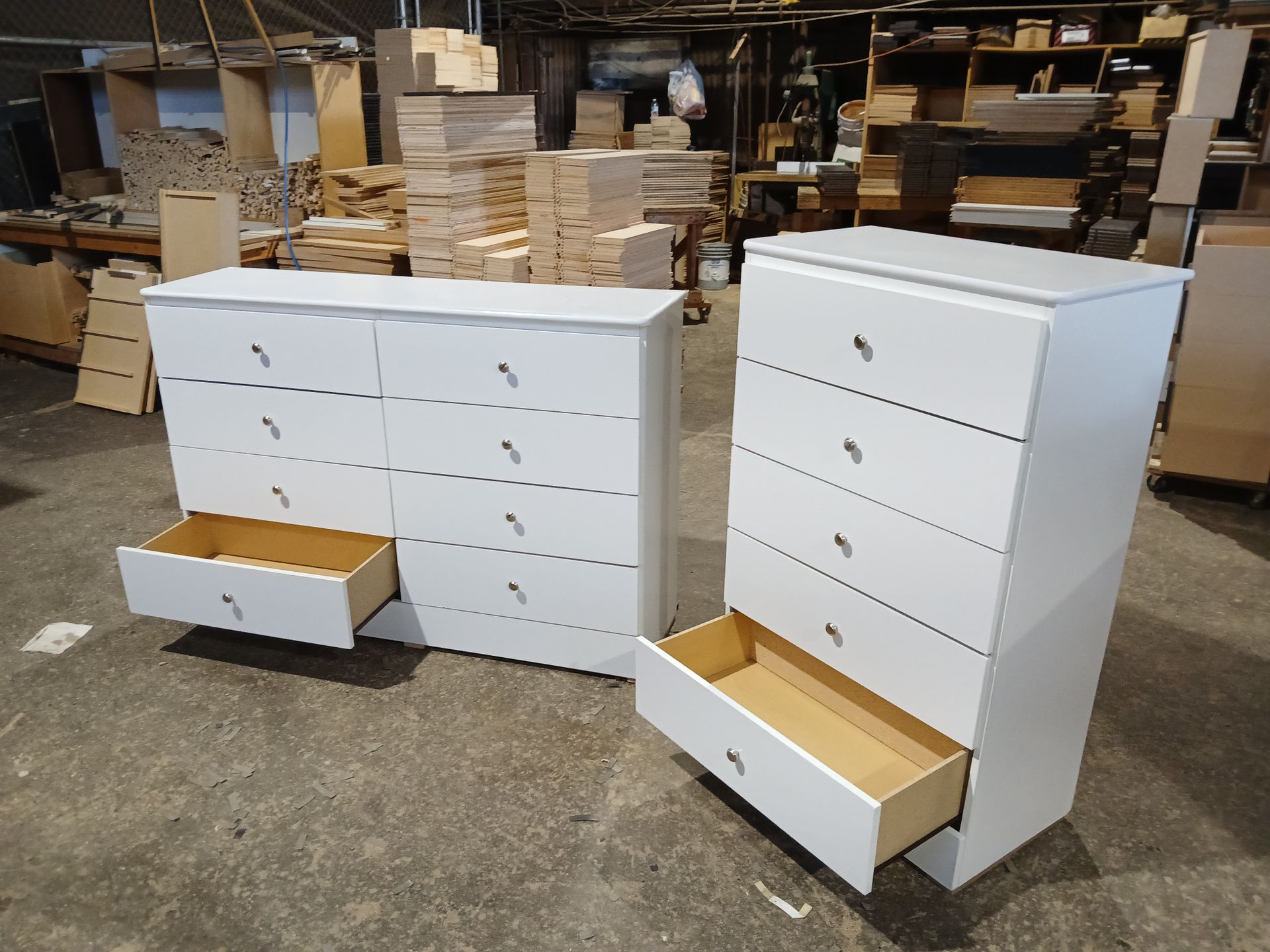 Dresser 8 drawers 57" wide slide rails on drawers. ( cajones con rieles)chest Of 5 drawers 30"wide. Available in black, gray, white, espresso, oak, red cherry, whitewash. Deliver available small fee depending area