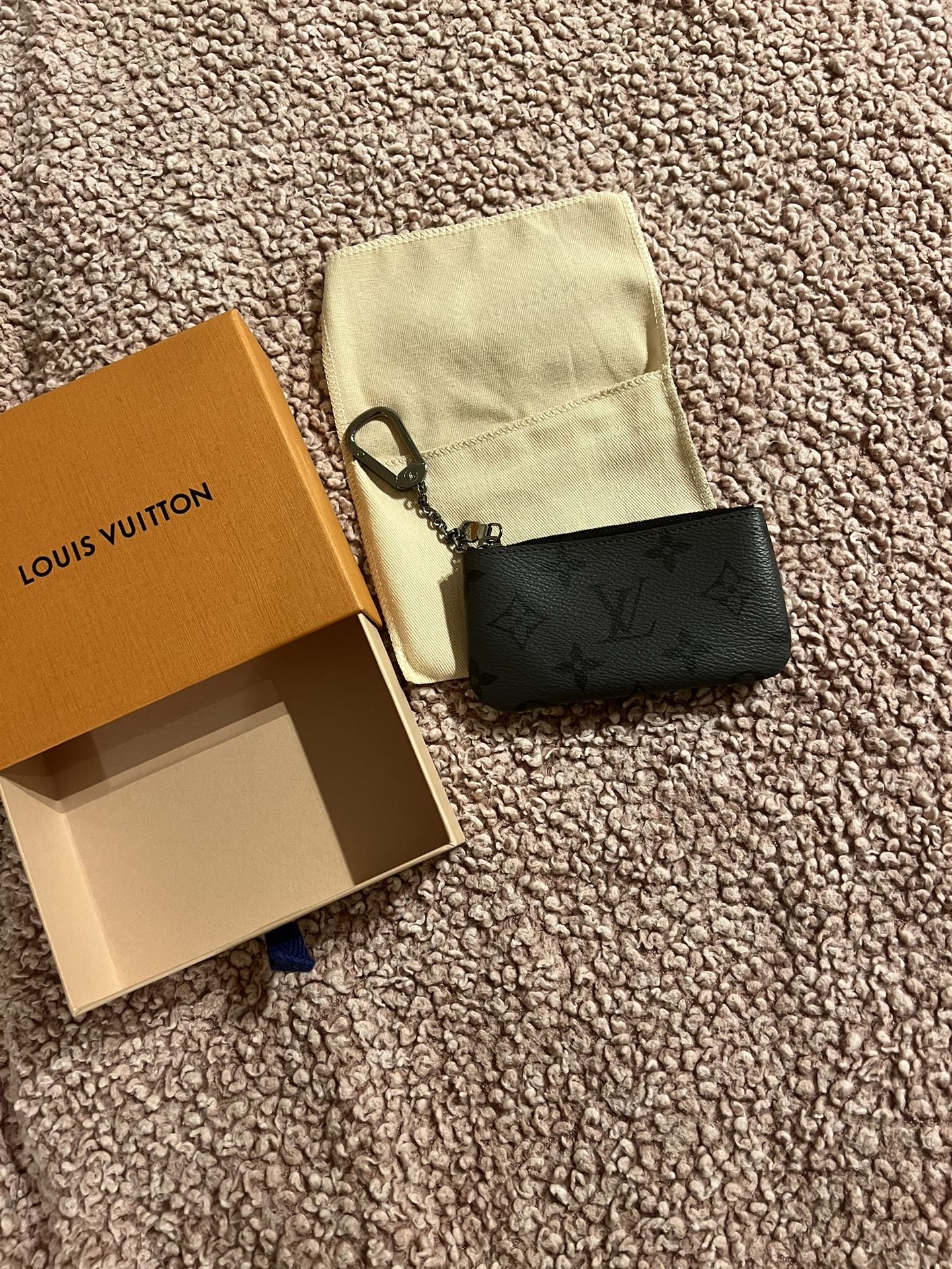 authentic louis vuitton card holder key chain in two toned grey and black variant, brand new, unused with box and dust bag! original price: $330