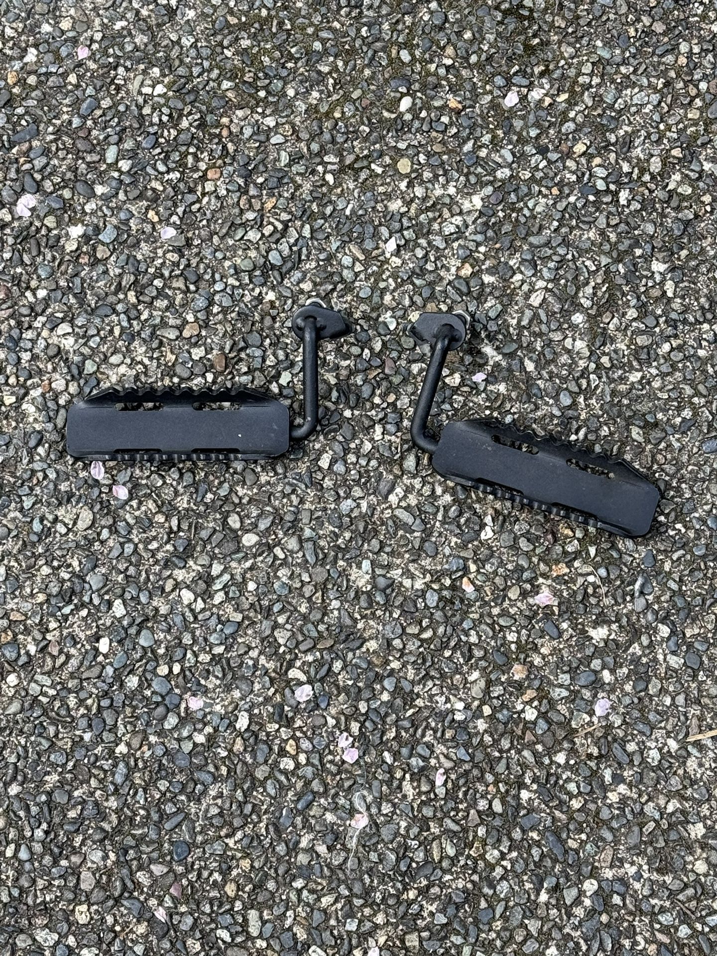Jeep JK foot rests. When the doors are off, put these in to rest your foot. Driver and passenger sides. Hardware complete