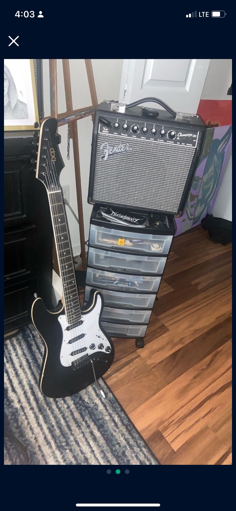 Guitar And Fender Champion 20 Amp And Wireless Cables