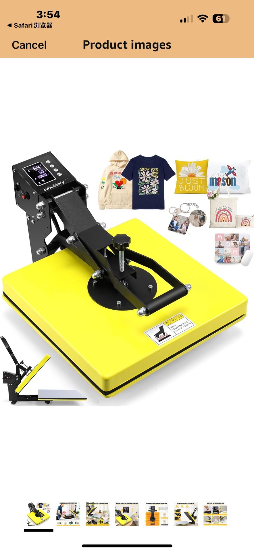 New in box Whubefy Heat Press 15x15 Slide Out, Clamshell Heat Press Machine for T-Shirts, Bags, Mouse Pads & More, Dual-Tube Fast Heating, Digital Ind