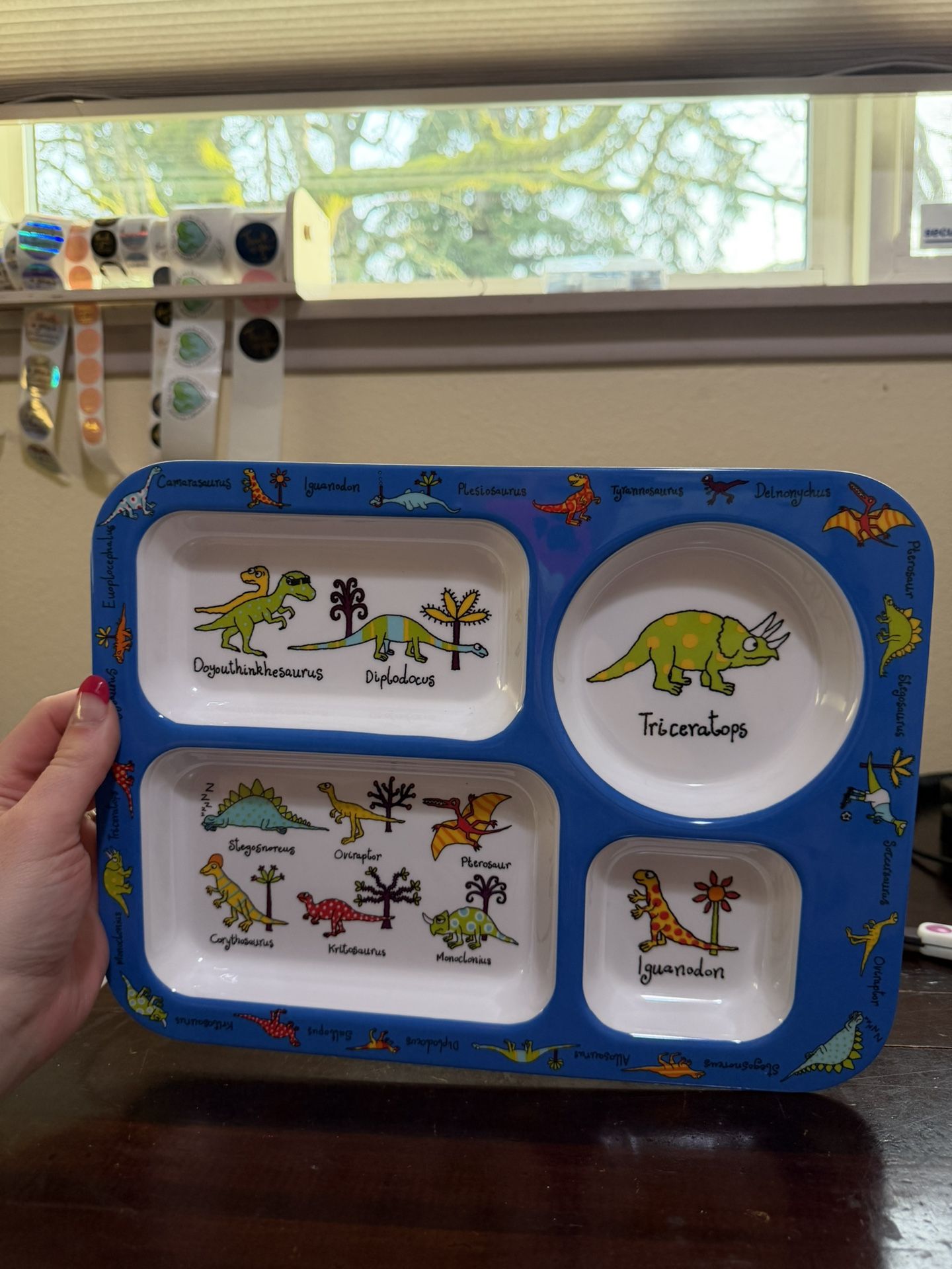 Dinosaur Children Boys Plate Melamine Serving Snack Food Blue Compartment Tray