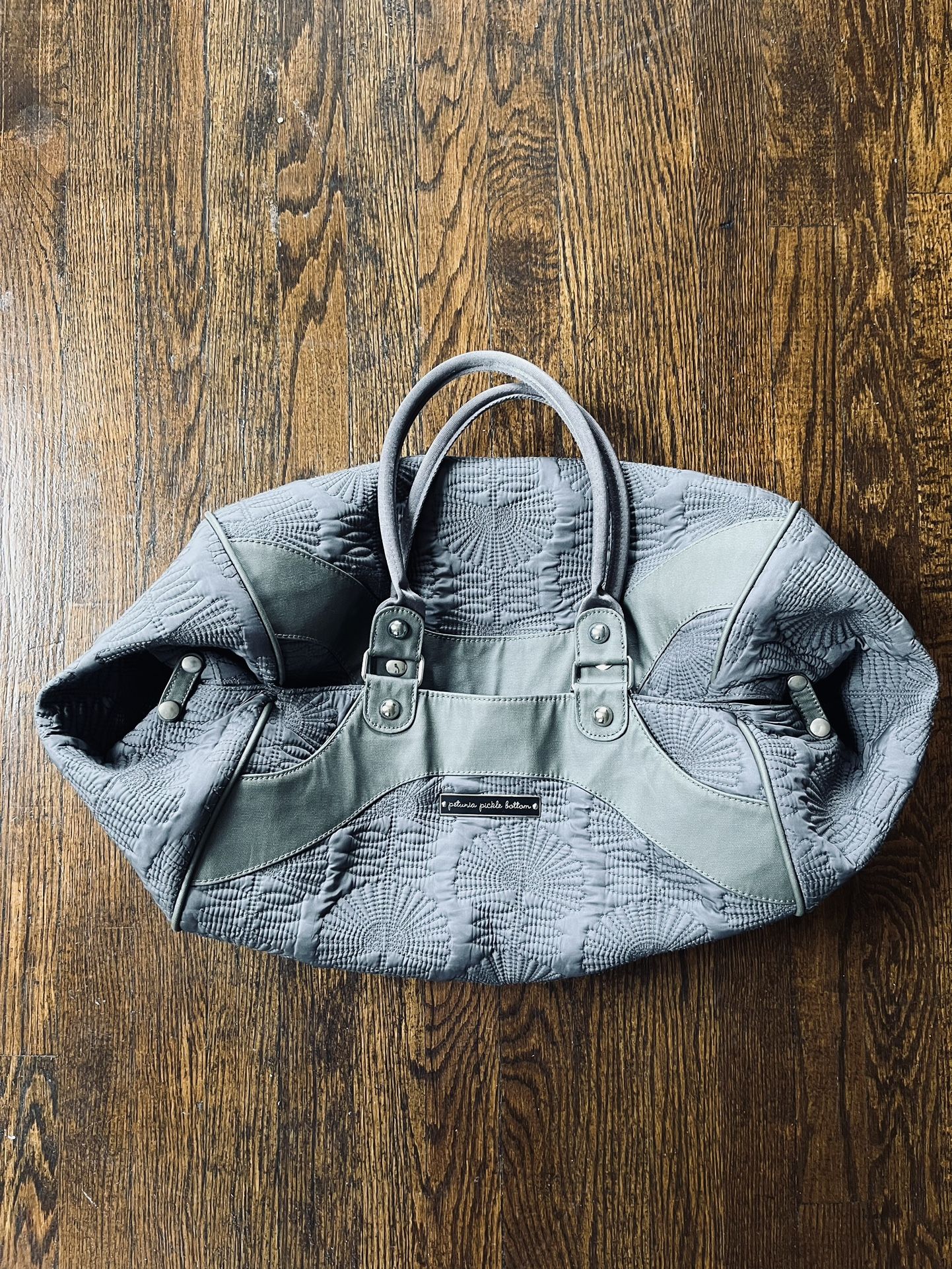 Petunia Pickle Bottom oversized diaper bag. Used. Excellent condition. Gray. Multiple compartments/pockets. Soft. Comes with black shoulder carry strap.