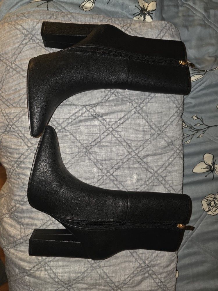 Very cute black pointed zip up boots. Never worn still has original packaging in them.