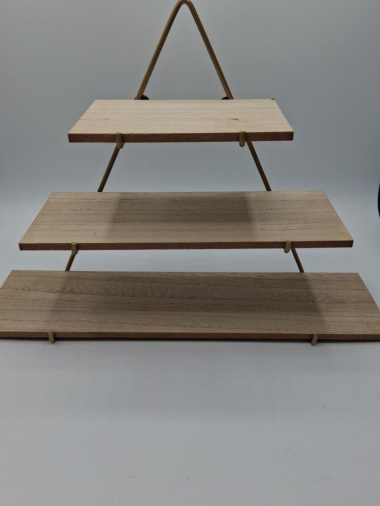 -Tier Triangle Wall Shelf – Wood & Metal