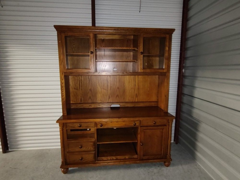 Cherry Wood Credenza w Storage Hutch