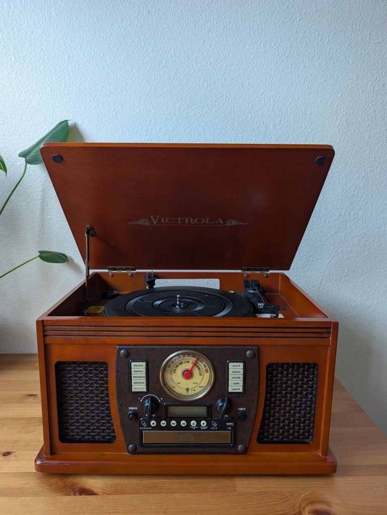 Description Victrola Navigator 8-in-1 Wood Record Player New price is $249.99 In like new condition except for minor water marks on the lid Built-in speakers for simple set up Plays vinyl, CDs, cassettes, and FM radio Stream from phone via Bluetooth USB stick and Aux inputs •Bluetooth and Headphone outputs Keywords RSL Rogers Sound Lab Harmon Kardon Speakers Receivers Amplifiers Reel to reels PreampS Turntables Old radio tubes HiFi audio Marantz Sansui H.H. Scott Mclntosh Pioneer AR Acoustic Research JBL Altec Lansing Eico B&W Bowers & Wilkins Martin Logan Mirage Onkyo Paradigm Rsl Roger sound Labs Mclntosh Yamaha Wharfedale preamplifier Klipschorns Harman Kardon JBL Denon Nakamichi The Fisher Western Electric Luxman Tannoy Bose Klipsch Garrard Thorens Studer Bookshelf velodyne cerwin vega HiFi