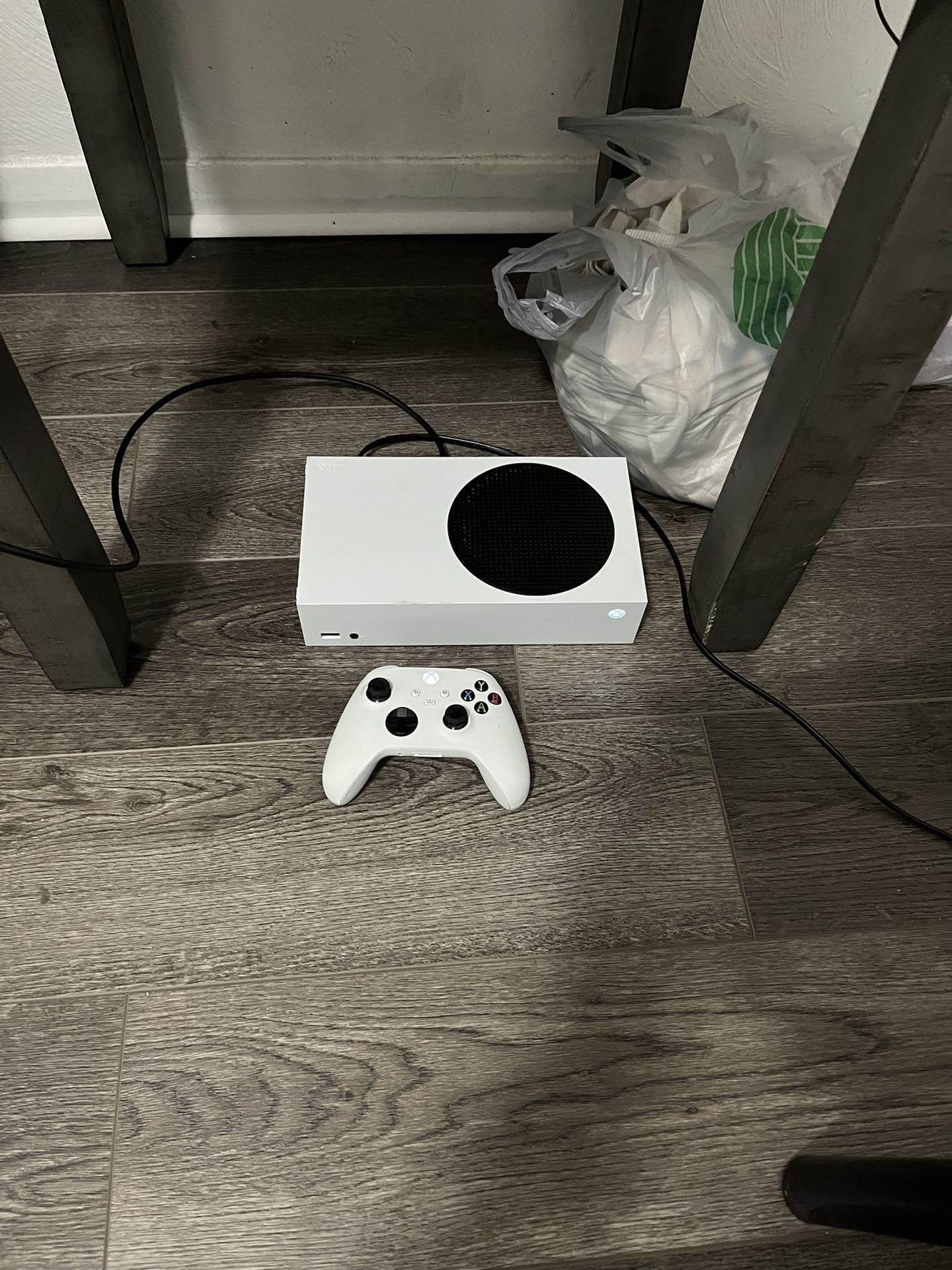 Perfect condition. Comes with all cords and controller. Missing back piece on controller but works perfectly still. Comes with hyper x headphones, rechargeable battery pack, and NBA 2k26 downloaded on the console.