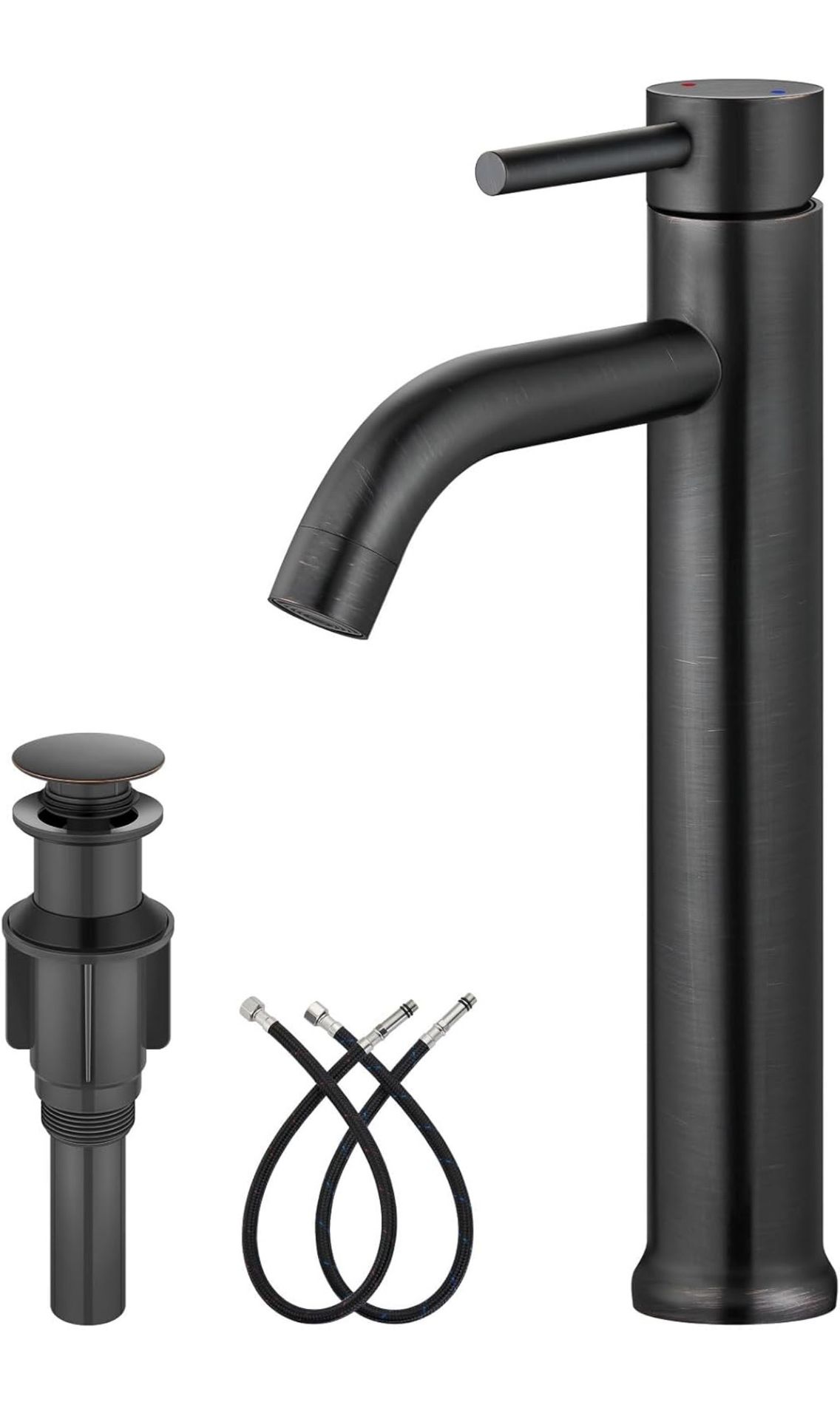 Vessel Sink Faucet - SUS304 Stainless Steel Tall Bathroom Faucet,Single Lever Handle, 1 Hole Bathroom Faucets with Supply Lines and Pop Up Drain, Oil Rubbed Bronze
