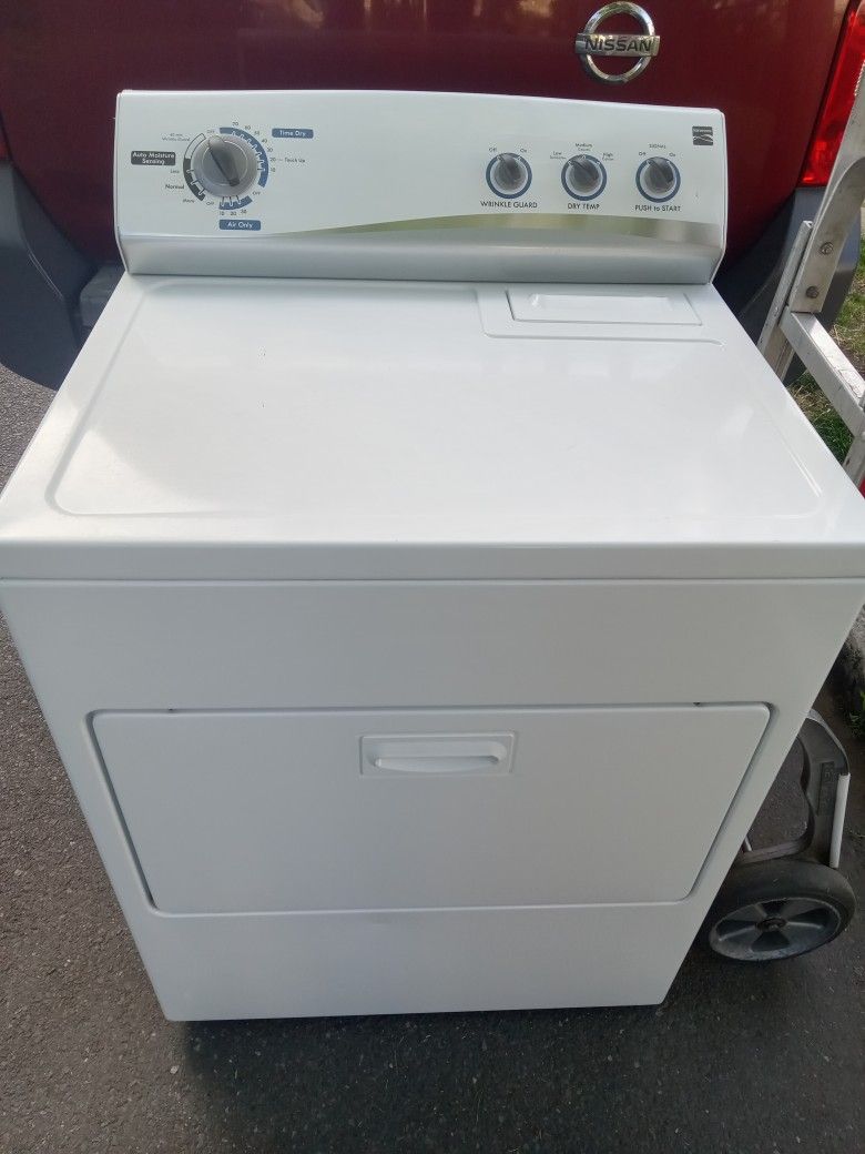 Kenmore electric dryer in very good shape and works well. Very clean inside and out. Features: Heavy Duty Super Capacity Plus 3 Dry Settings 3 Temperature Settings Wrinkle Guard Feature On/Off Signal Push Start Button 220 volt cord Height: 43 inches Width: 29 inches Depth: 27 1/2" inches $245.00 Free delivery within a reasonable distance.