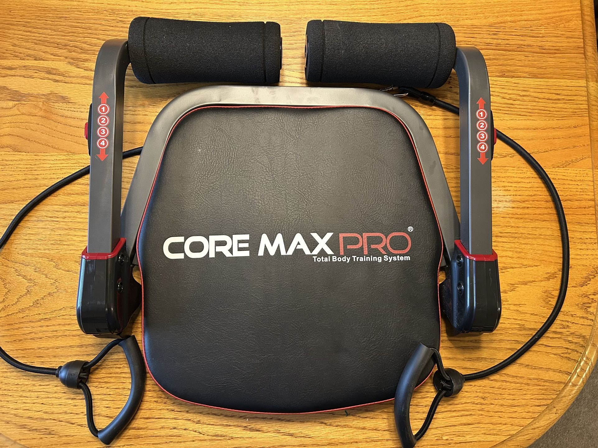 Core Max Pro Total Body Training Comes with 2 resistance bands Has 2 adjustable arms to assist with workouts Willing to bundle with other exercise equipment