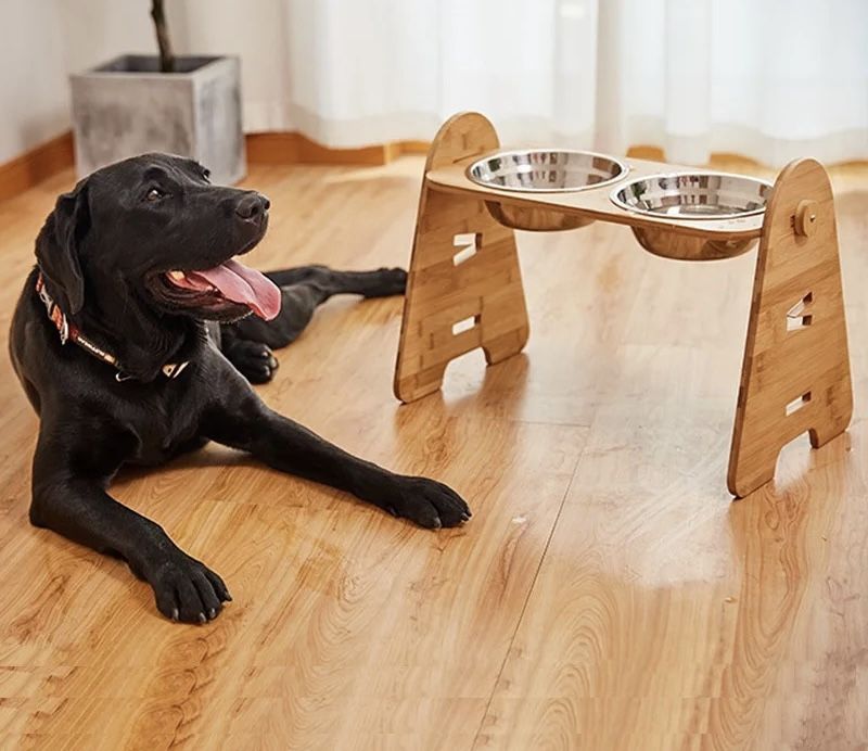 Bamboo Adjusted Pet/Dog Double Bowl Feeder