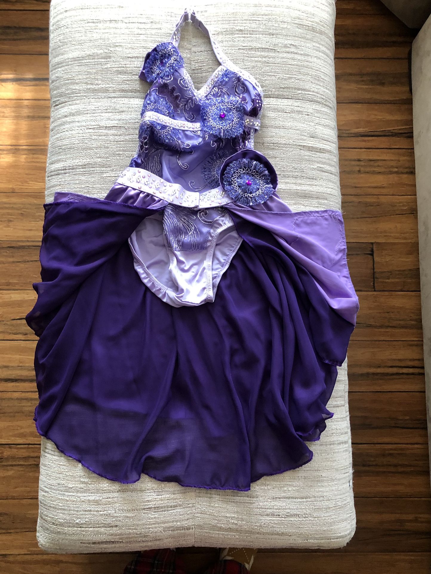 Lavender colored custom dance costume with rhinestoned headband. Fits youth L-XL. Pick up in Anaheim, CA.