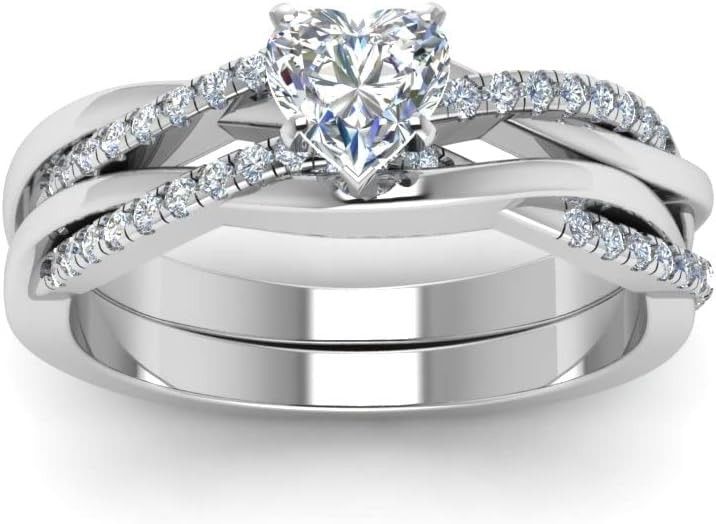 Heart Cut Infinity Twist Engagement Rings Set for Women,1.84 CTW Moissanite Rings 18K White Gold Plated Sterling Silver Sz 9.5
