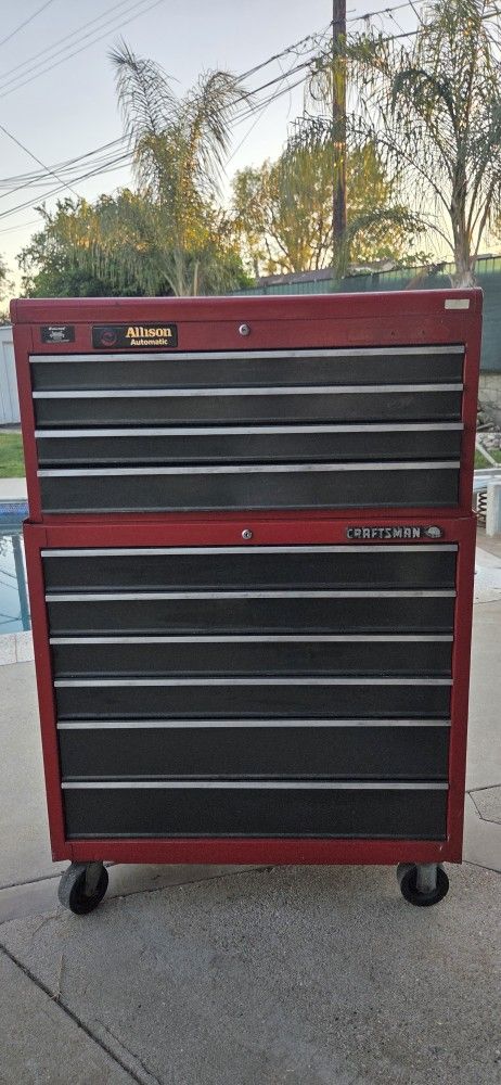 Selling this tool box. Cut down on tools and have no use for this one anymore. All drawers work except for one. Is the 4th one one from the top. This separates in two pieces if you want. Selling all together as is. Drawer just needs the drawer slide to be replaced. Measurements are on pictures. It will be clean an empty on day of sale. Carpenter, electrician, construction, storage, tools, mechanic, shop, garage.