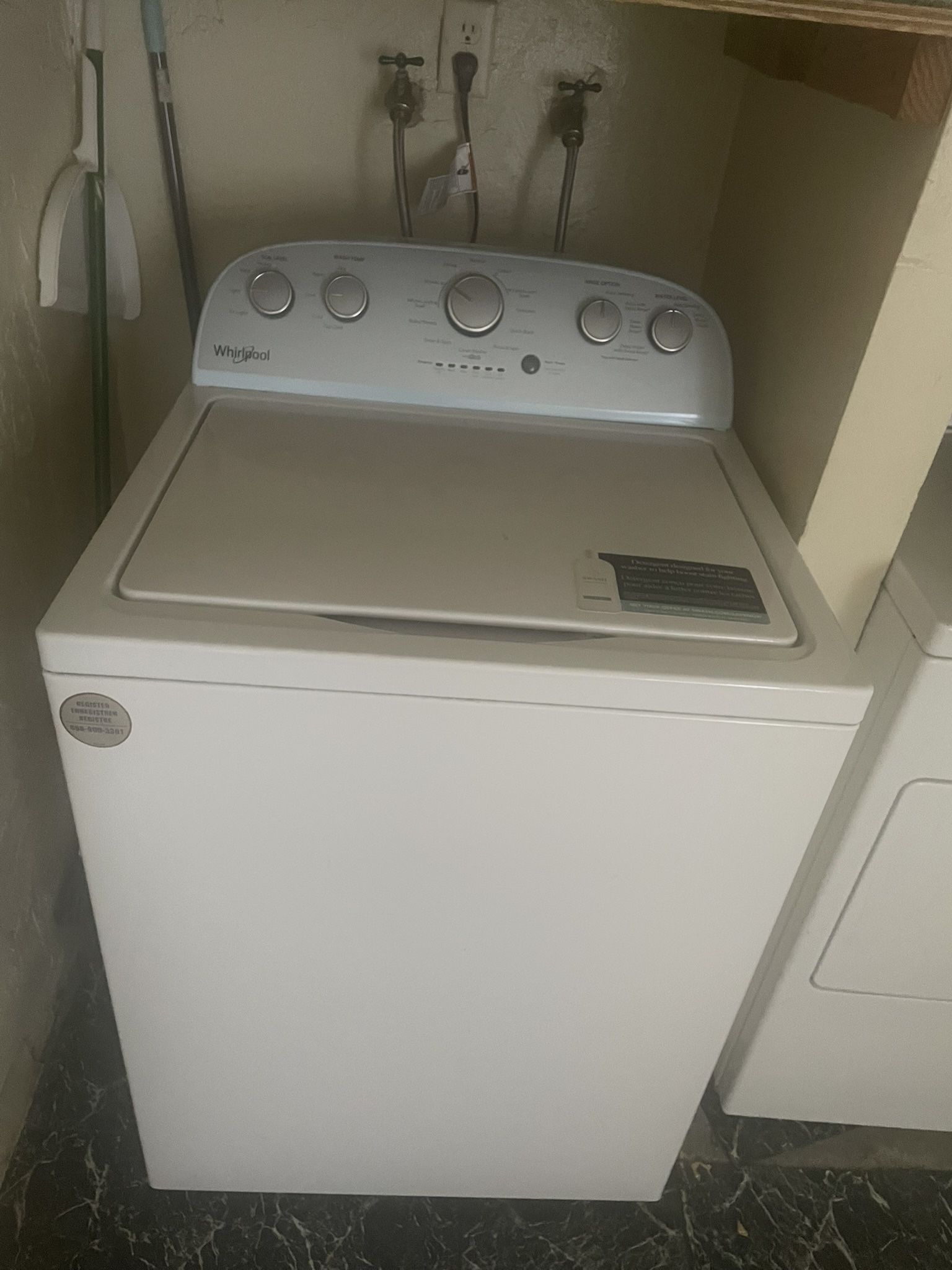Washer (Whirlpool), Dryer (Kenmore).
