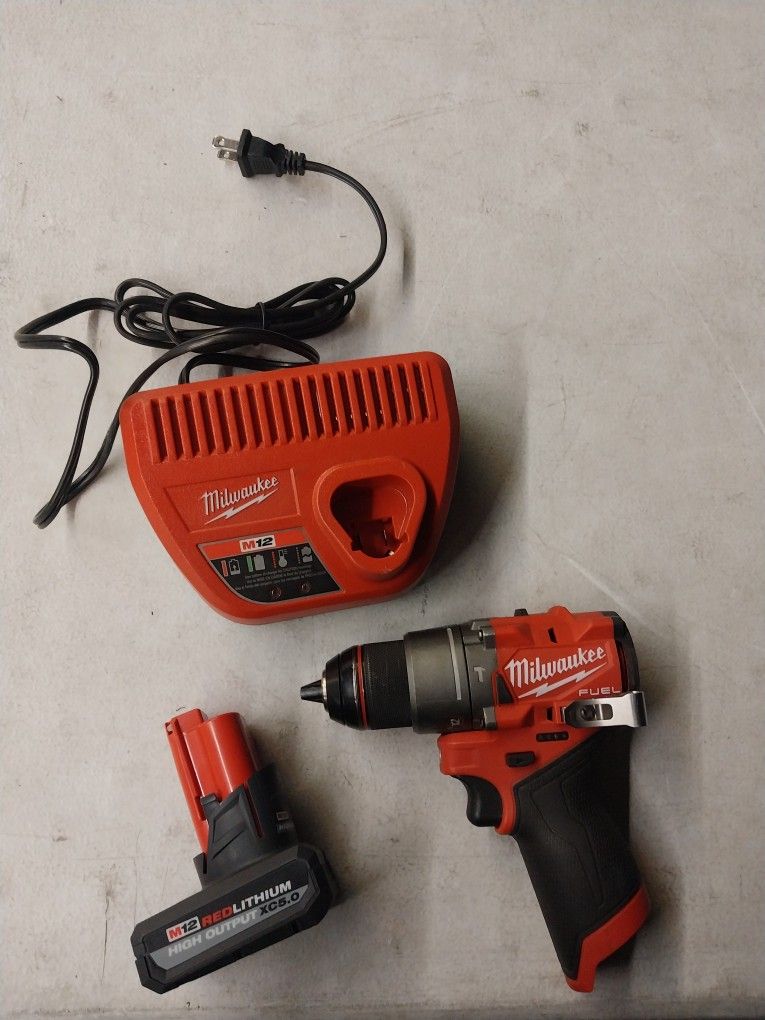 MILWAUKEE HAMMER DRILL 12V LITHIUM FUEL BRUSHLESS WITH BATTERY AND CHARGER