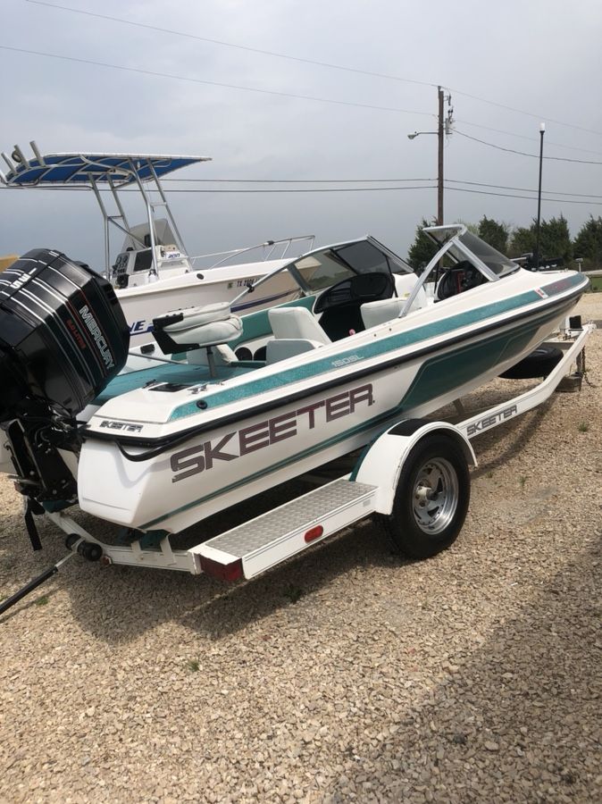 1996 skeeter Fish and ski 18 ft with outboard Mercury black max 135 hp Come with skeeter Single axle trailer Walk through Winschel Motor guide Trolling motor 45 lb 2 Live wells cd stereo Power trim and tilt S S prop Life jackets good stickers 2018 all lights works all original Color Aqua blue & white Real nice looking boat all title contact for info $5600 No PayPal cash only
