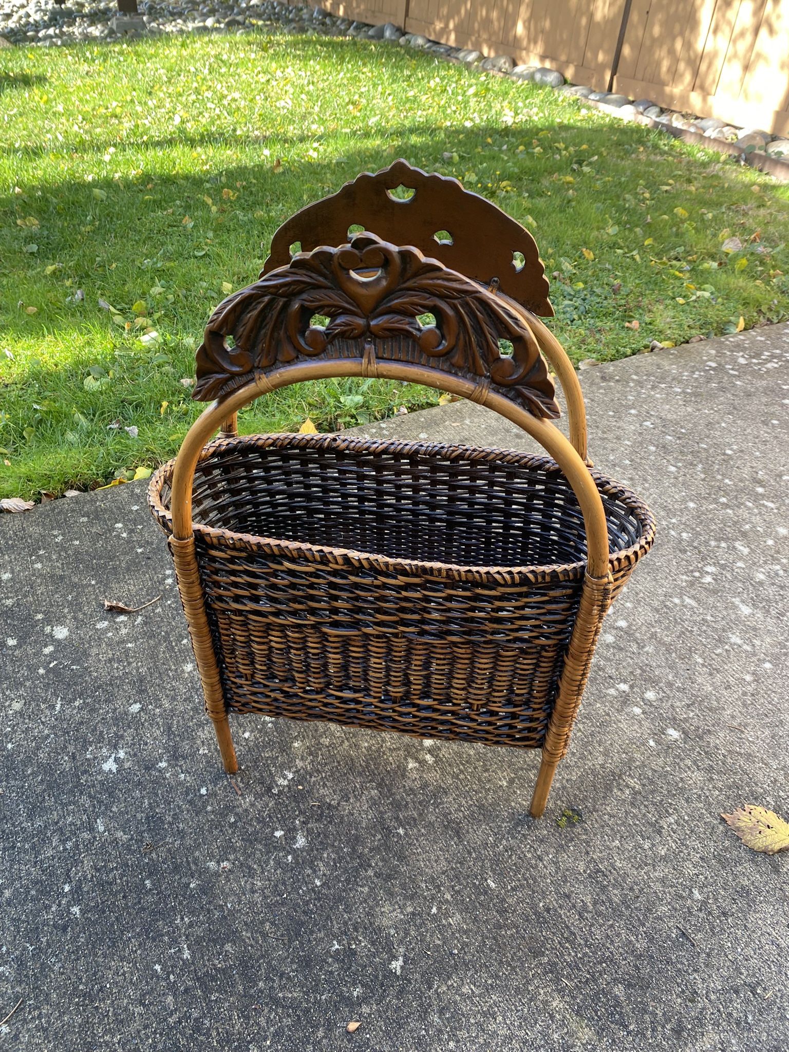 This is a very quality piece of wicker in great condition with a carved wood detail.