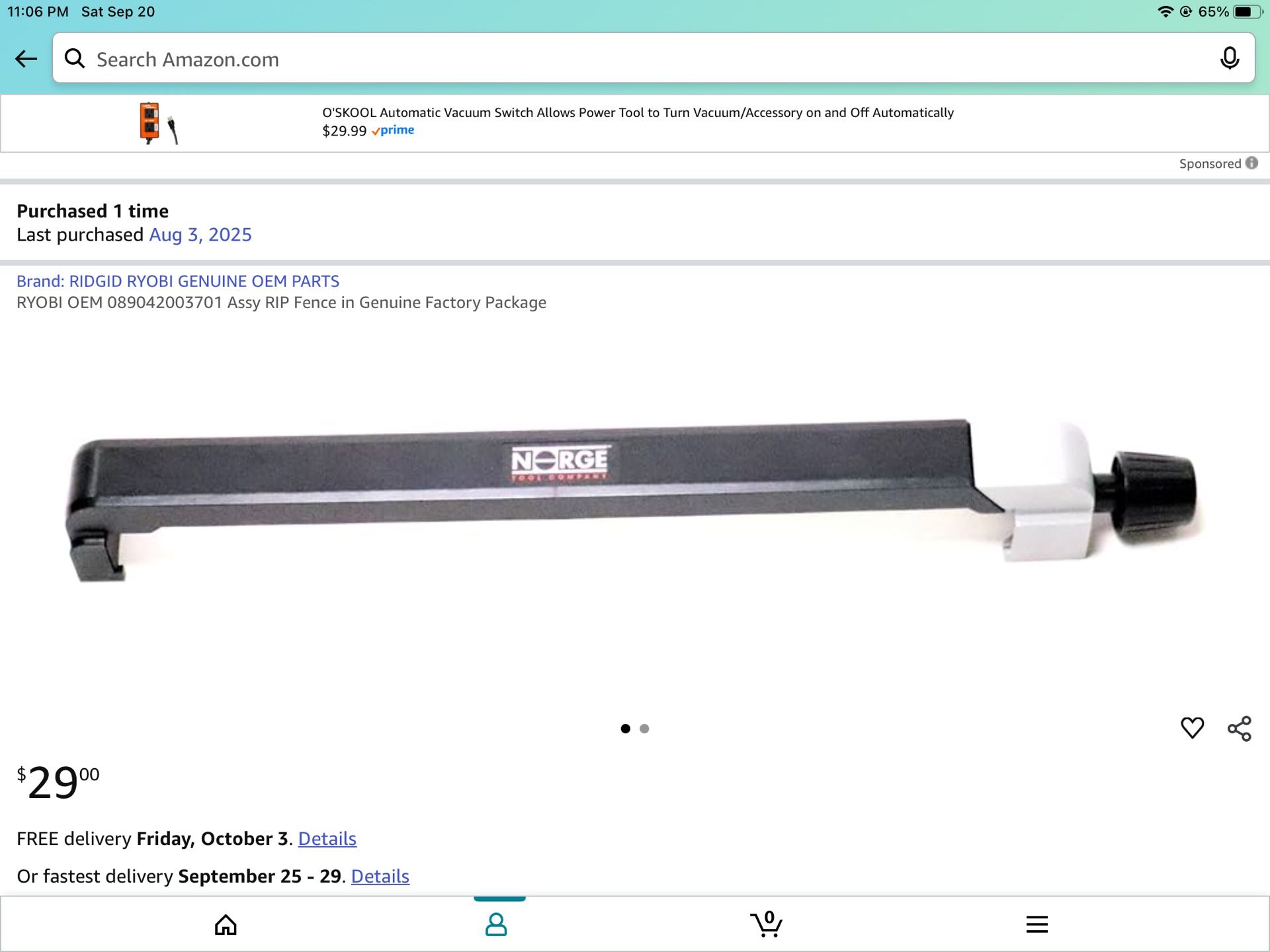 Ryobi table saw replacement fence I purchased the wrong size size is shown in the picture paid 30.00 15.00 firm sell for 15.00 firm brand new