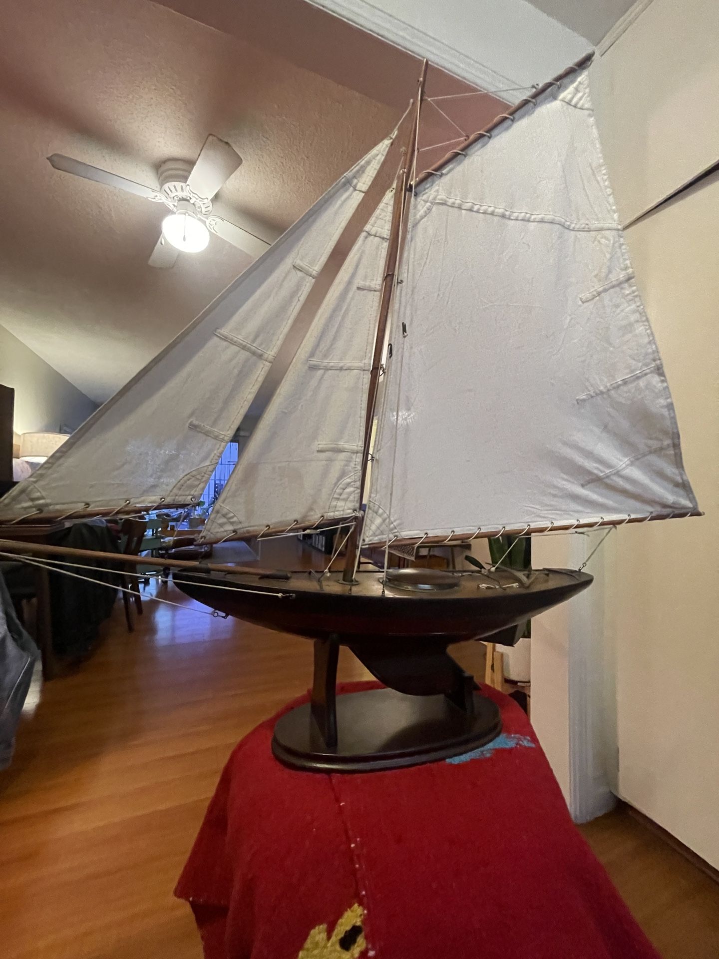 Highly detailed wooden model ship — super eye-catching piece that adds a lot of character to any space. Great for home decor, office styling, or as a unique gift. Solid build with nice detailing throughout. In good condition with light wear that adds to the vintage look. Priced to sell — feel free to reach out with questions or offers.