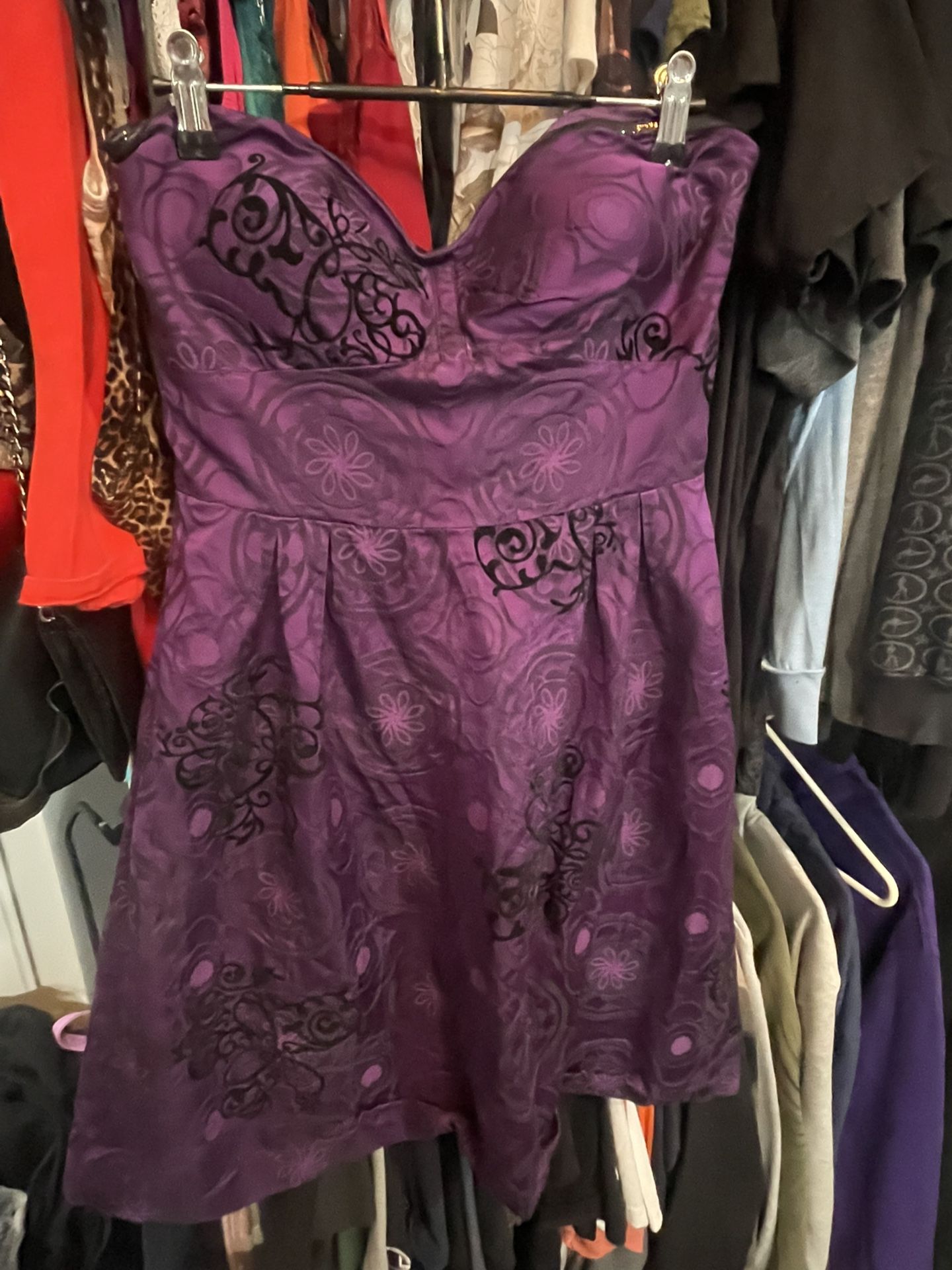 size 9 strapless purple guess dress could be dressed up very formal or dresses down for summer !!